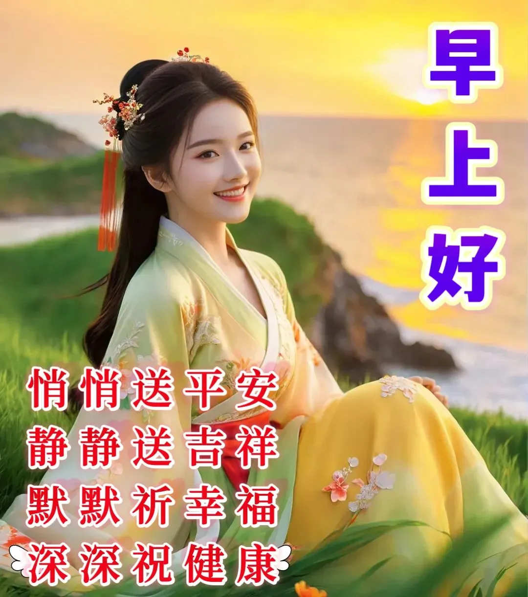 🌈早上好!🌞一心一意的祝愿,🌹融入一串串温馨的文字,🌷崭新的一周开始,💓将最诚挚的祝福赠予您,🌺祝您一家和和美美,💖一年欢欢喜喜,🌊一生快快乐乐,🎉一世平平安安!🌅