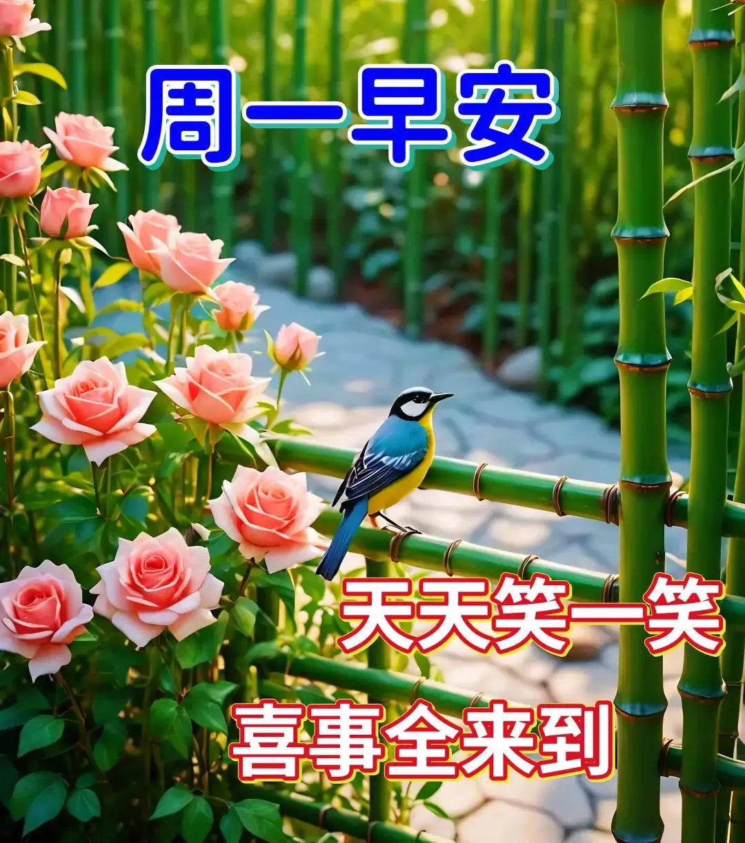 早安!晨起好风光🌿,日子轻轻唱🎵,周一万事皆晴朗🌟。愿你心怀美好💖,步履轻盈🚶,把烦恼丢在身后👋,把欢喜装进行囊🎒。愿新的一周🍀,平安顺遂🙏,幸福安康🏮,笑容常在。