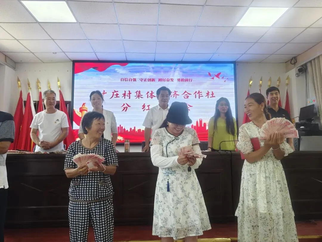 时庄村集体经济合作社分红现场。