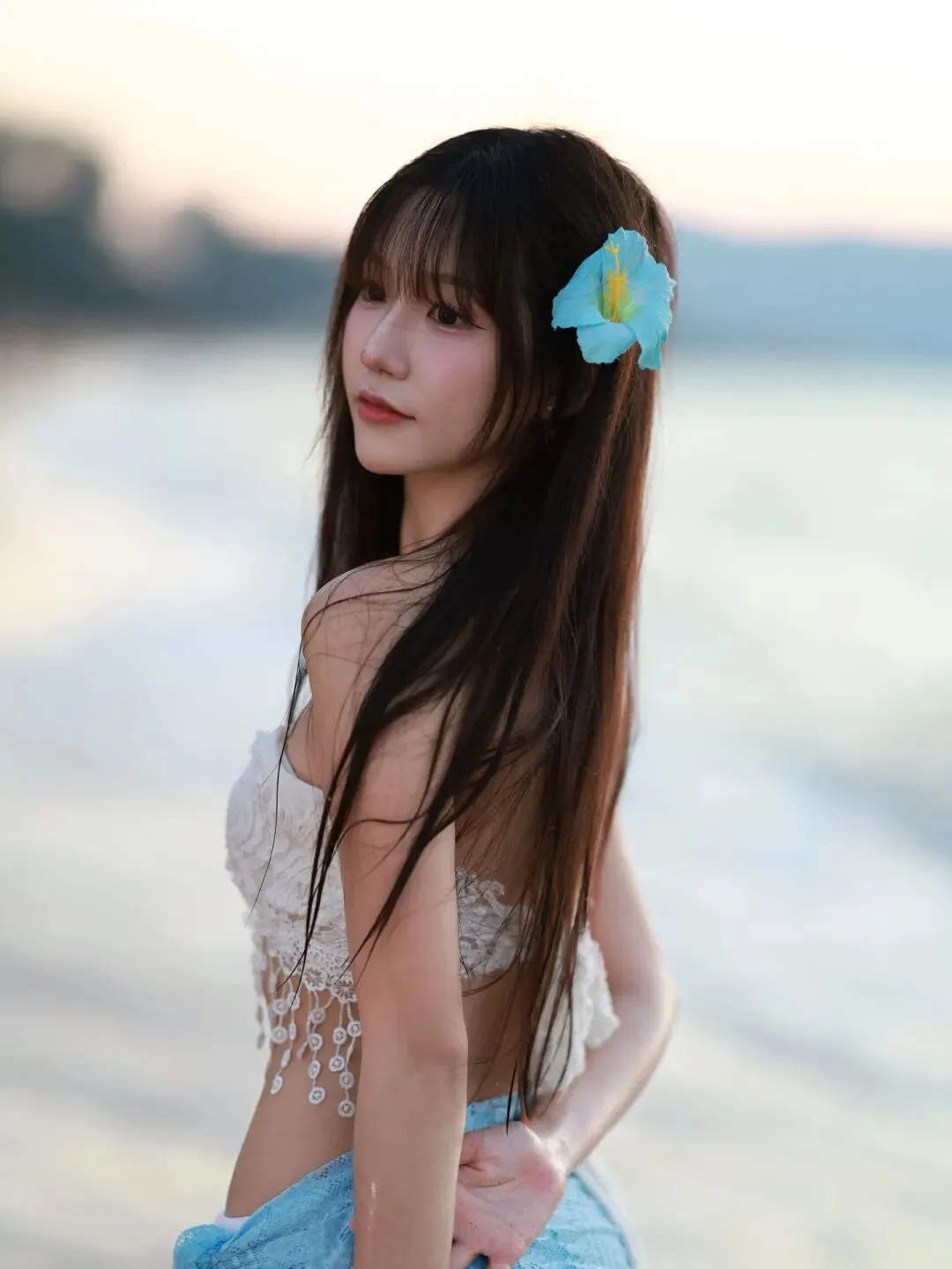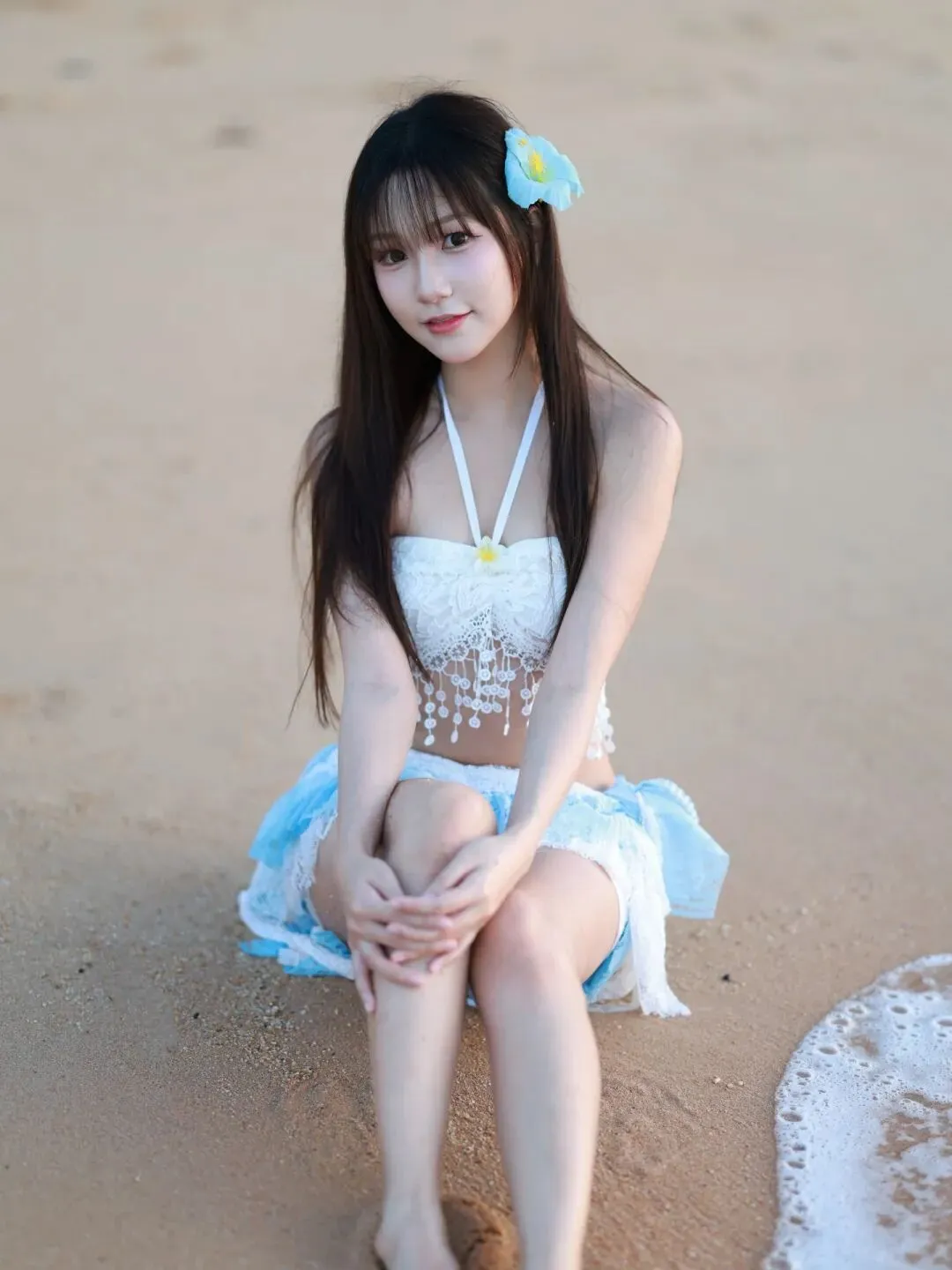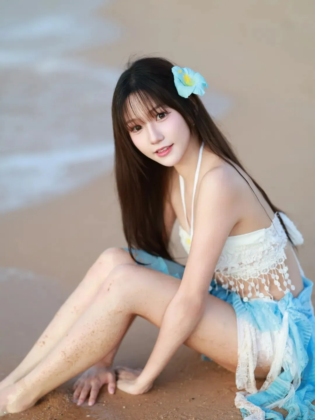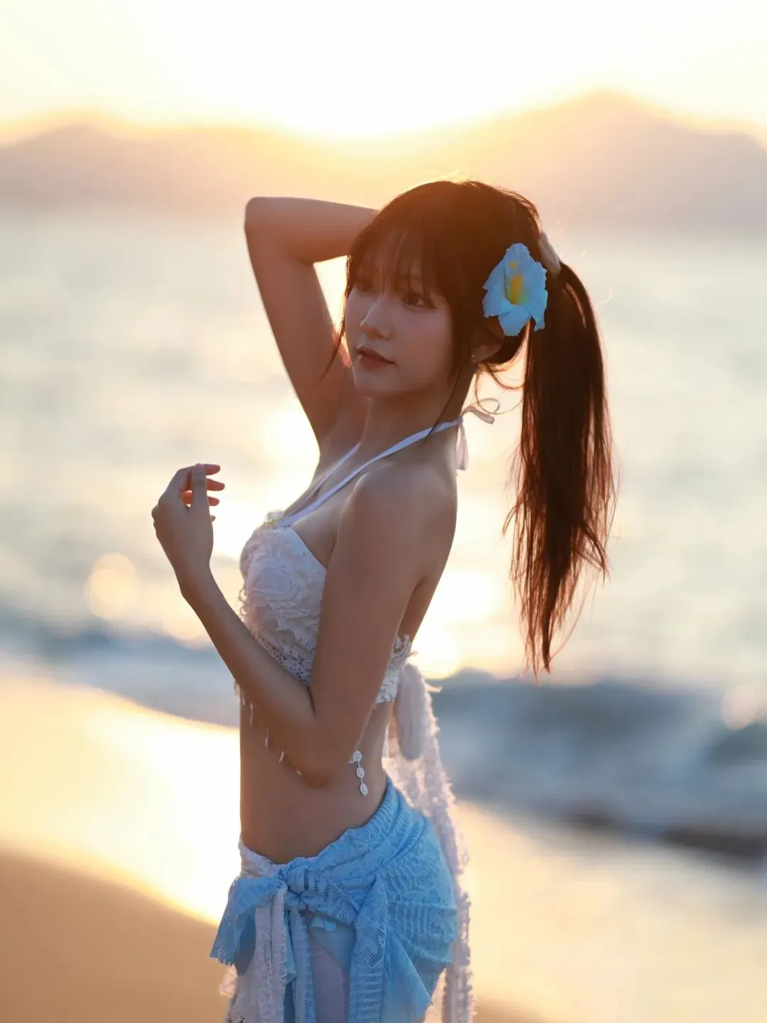 当前位置:首页>美女资讯>蕾丝泳衣邂逅海浪,蓝白纱裙少女在沙滩写下夏日恋曲