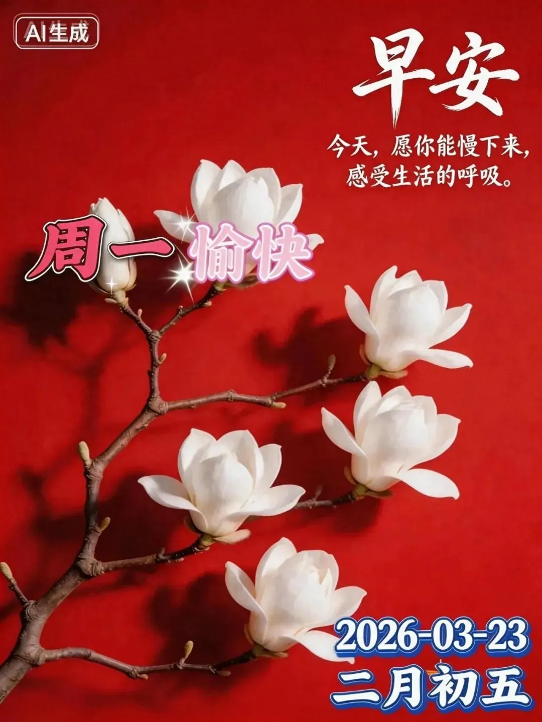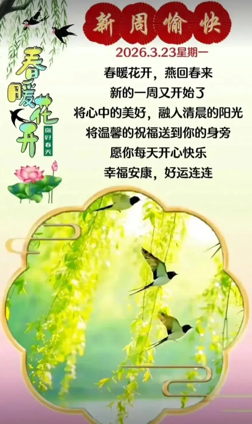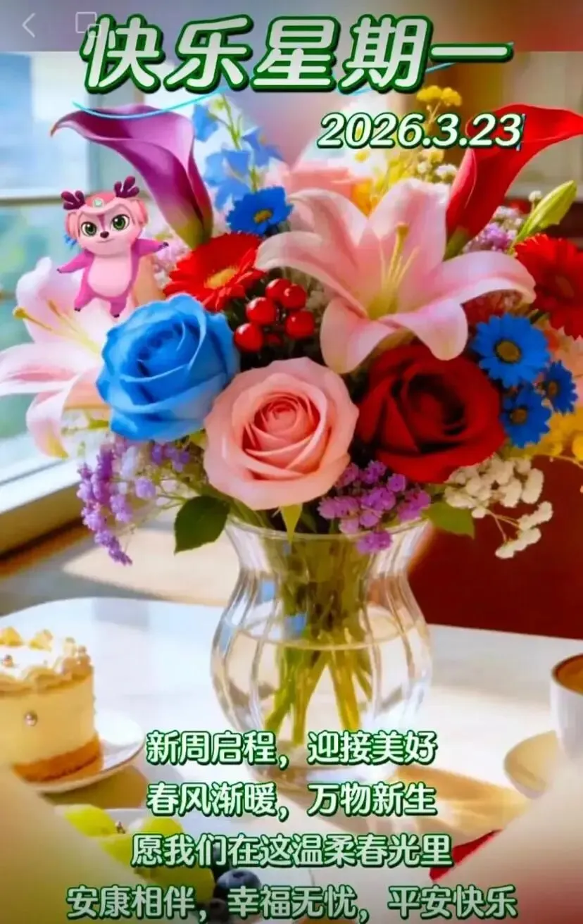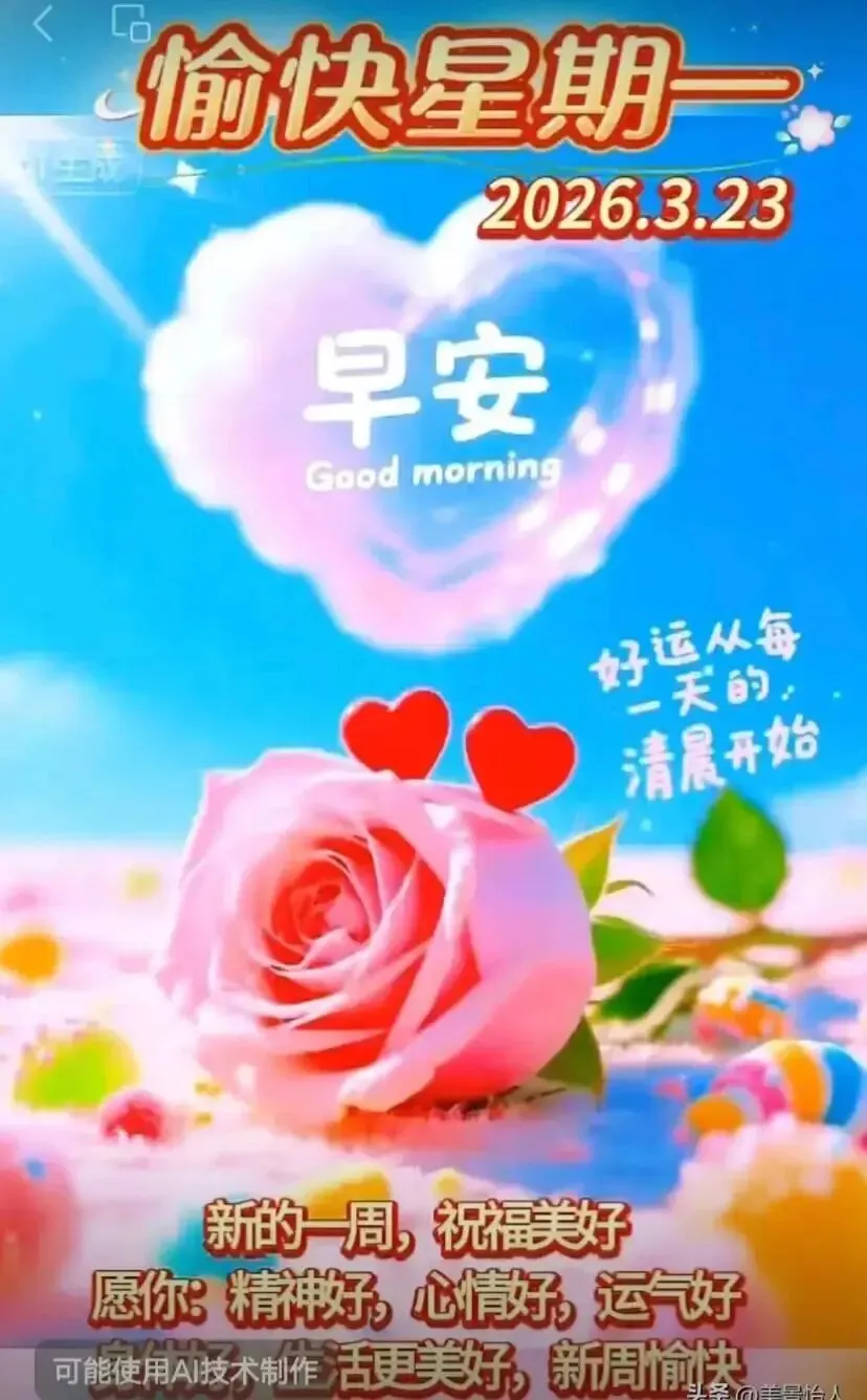 当前位置:首页>美女资讯>3月23日周一早上好图片 早上好温馨问候语 +精美图片