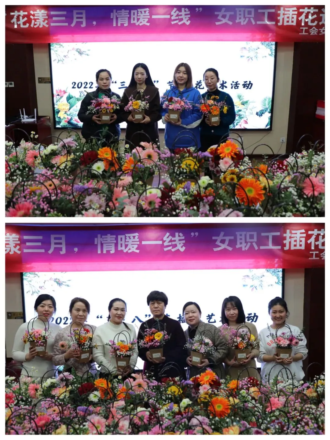 3月7日上午,女职工们齐聚一堂,在有趣的花艺和鲜花的芬芳间,大家用自己丰富的想象力和细腻的心思,完成了一幅幅新颖和谐、充满寓意的花艺作品。女职工们不仅享受了插花的美好时光,更是心系一线,将她们所有的作品送往一线班组,将节日的含义升华,丰富职工们的精神生活,激发公司凝心聚力!