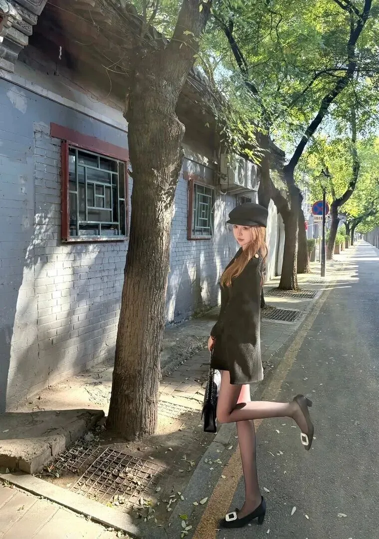 秋日胡同邂逅复古女神!她的穿搭美到让人移不开眼