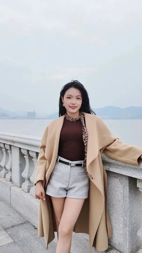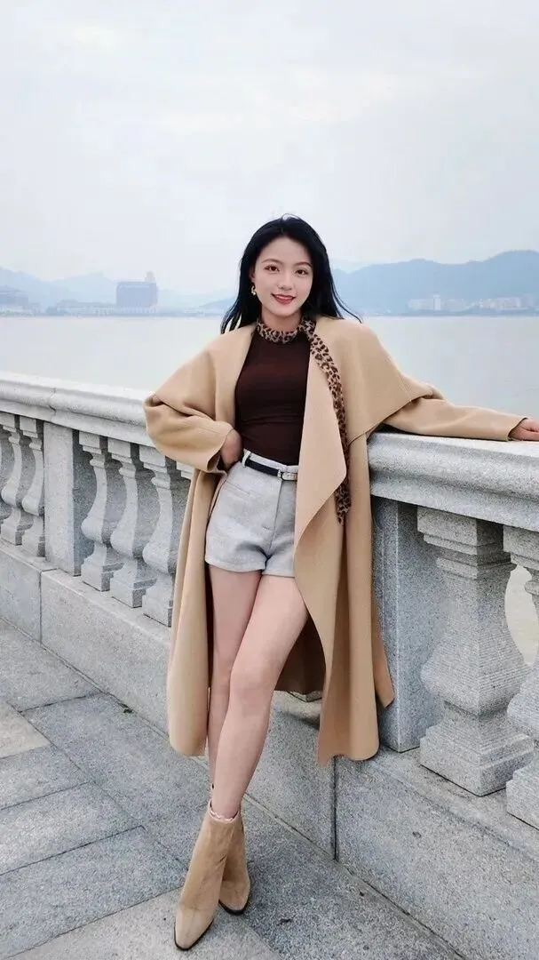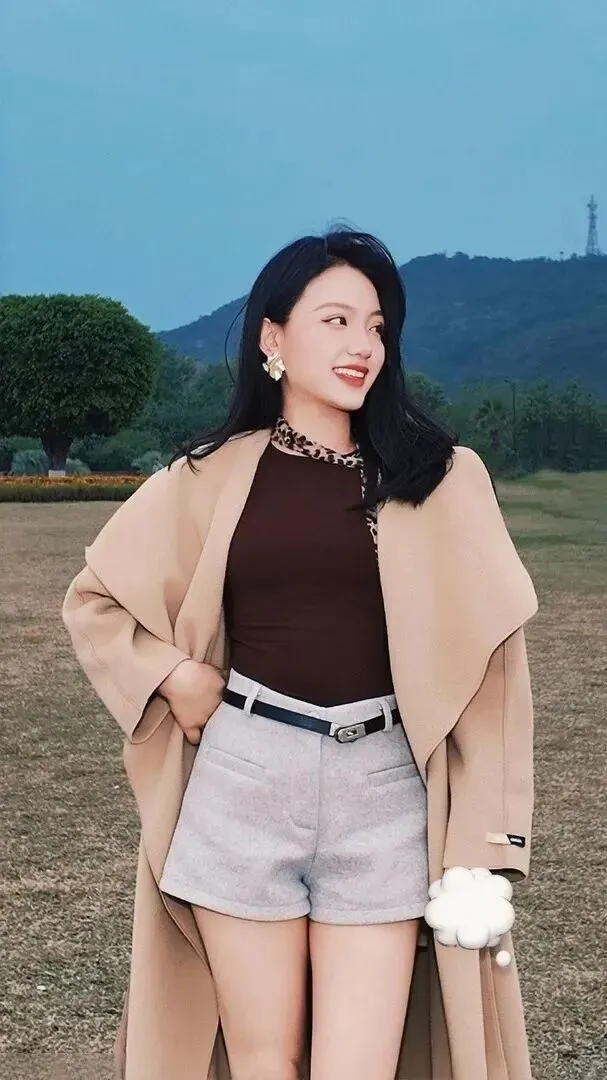 通勤穿搭成了许多人的痛点,既需要正式又要不能太过死板。这位达人通勤造型太绝了,大衣是她创造的新式装扮。首先是一套驼色长款毛呢大衣,宽松的版型藏肉效果好。穿深棕色紧身针织衫暖而不臃。最吸引人之处就是那条豹纹丝巾,系在脖子上立马亮了全人,精致度提高。下身是浅灰色的毛呢短裤,腿细,黑色腰带拉高腰线,一双短靴,整个人显得高挑瘦长,韩剧女主范儿满满!适合各种身材,毛呢面料质感好,秋冬穿着出门绝对有气场。