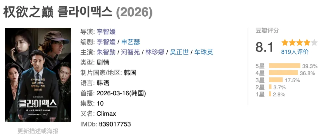 总而言之,《权欲之巅》是开年后为数不多的口碑韩剧。