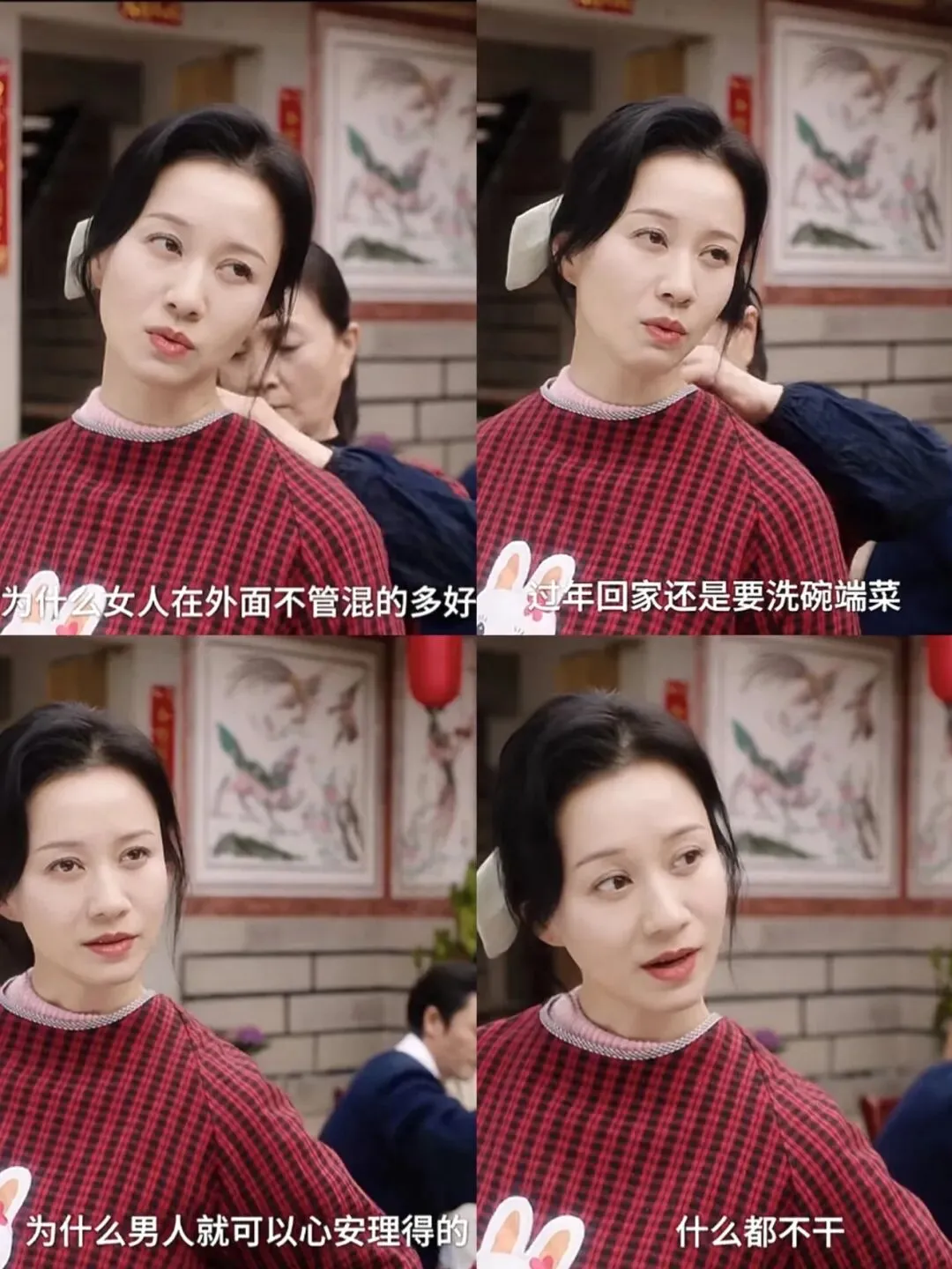 这次在《夫妻的春节》里,倪虹洁演女主,讲的是她从漂亮姑娘变成婚后事事操心的全能妈妈。