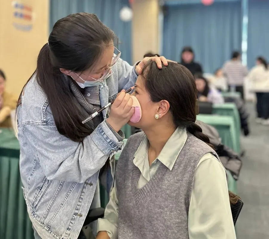 美妆讲座中,专业美妆师从护肤技巧、妆容打造、形象管理等方面详细讲解,并现场邀请女职工担任模特,进行日常妆容示范。