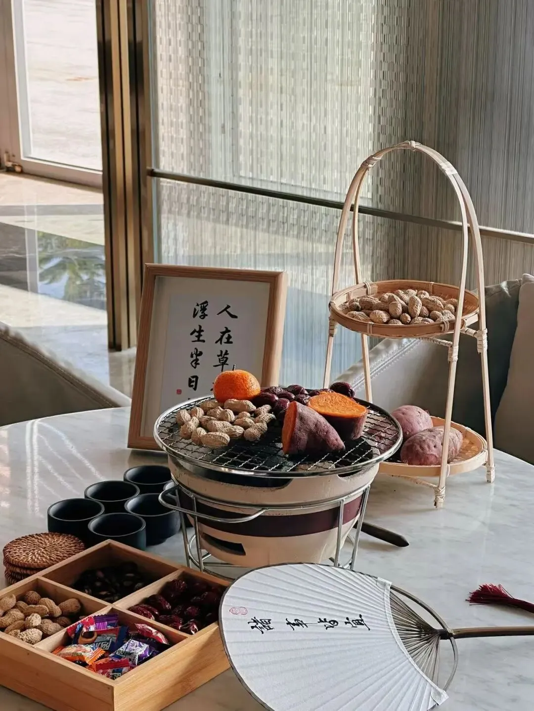 前往【围炉煮茶】(6人左右一炉),是一种休闲方式,茶客围炉而坐,闲聊,品茶,拍照打卡,好不惬意。源自云南的“火塘烤茶”,又叫“糊米烤茶”,当下的“围炉煮茶”则将火塘换成了炭炉,茶则可以有红茶、果茶、奶茶等等,另外还可以烤板栗等一些小零食。