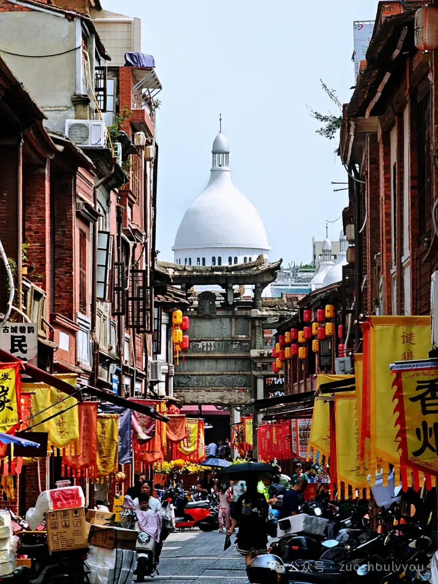 前往游览【后港古街】,位于古月港的源头蔡港,是一条连接古月港和陆地的内河,一条再现500多年前福建漳州古月港繁荣的古街。据说这里曾经是石码古镇的发源地,商船如织,店铺林立。因为对外往来频繁,后港古街也成了多元文化的融合交汇地:“南”有明朝佛教古刹五福寺,“西”有道教场所玄天上帝庙,“中”有儒家思想传播地锦江书院,“东”有来自西方的天主教堂。