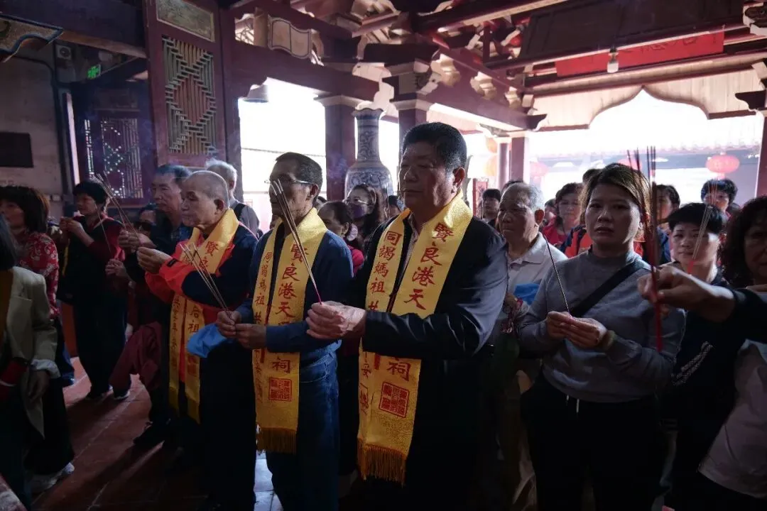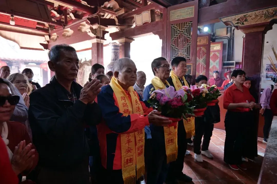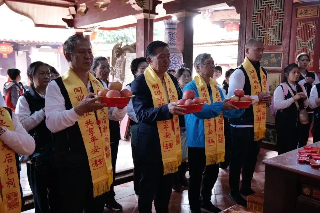 23日下午,台湾彰化无极慈天宫进香团抵达贤良港天后祖祠。祖祠董事长林自弟对进香团的到来表示热烈欢迎,并陪同进香团向妈祖行庄严的三献礼仪式。