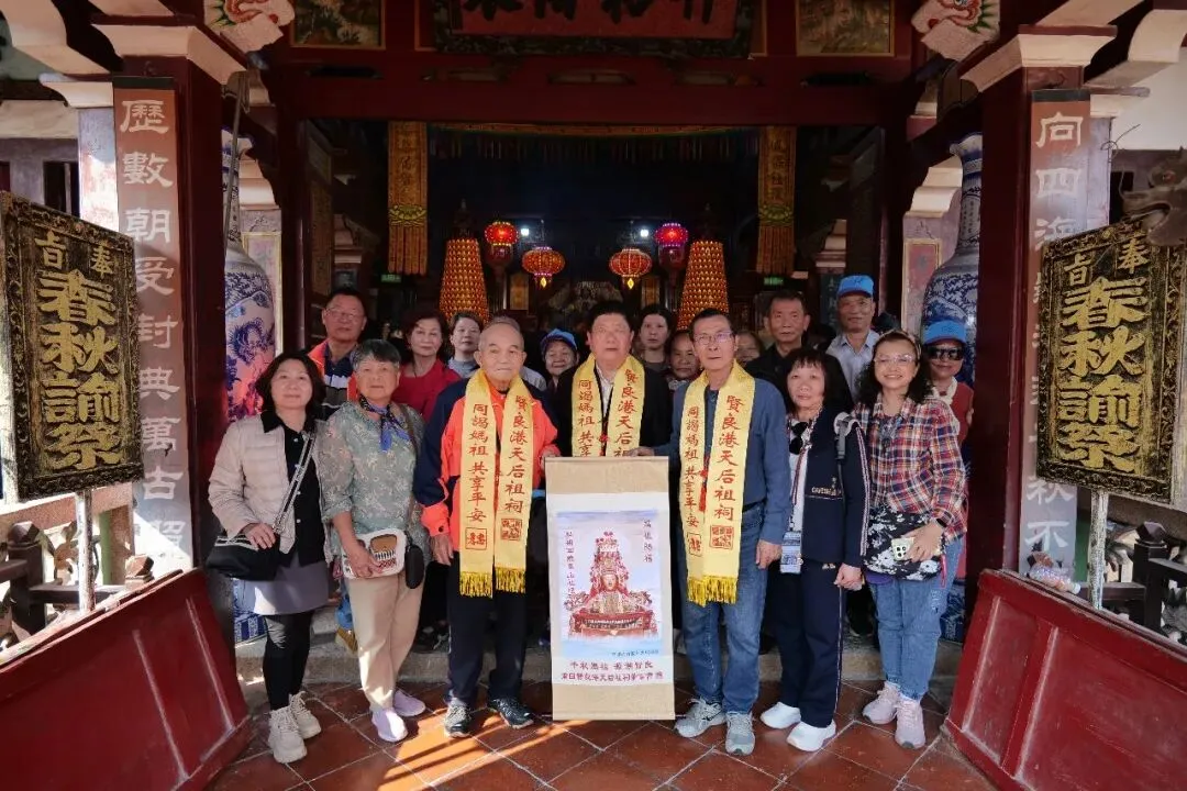 23日下午,台湾屏东县枋寮乡枋寮村德兴宫主委林辉隆率团抵达贤良港天后祖祠。