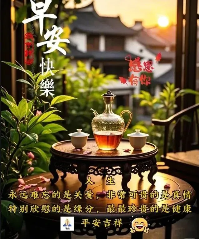 晨曦传来讯,起身含笑迎,愿你健康喜,万事吉祥顺,天天皆欢乐,幸福长久存。让我们在思念里互诉平安,在牵挂中呵护好自己,幸福康泰。祝君早安吉祥!🌹☀️❤️🌺😊🎉