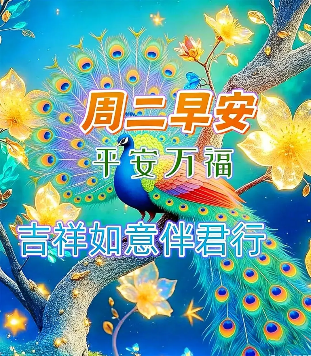 清晨一声早,好运跟你跑,吉祥围你绕,福气身边飘。一句早安问候到,忧愁烦恼全抛掉,晨起精神爽朗朗,日子越过越美好!周二早安!