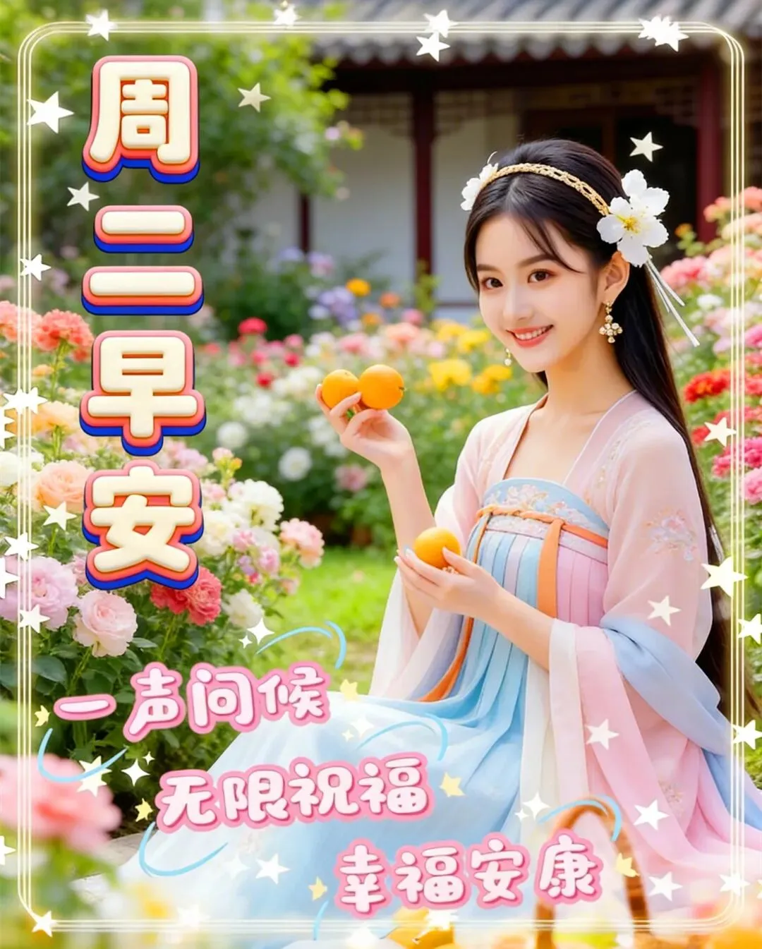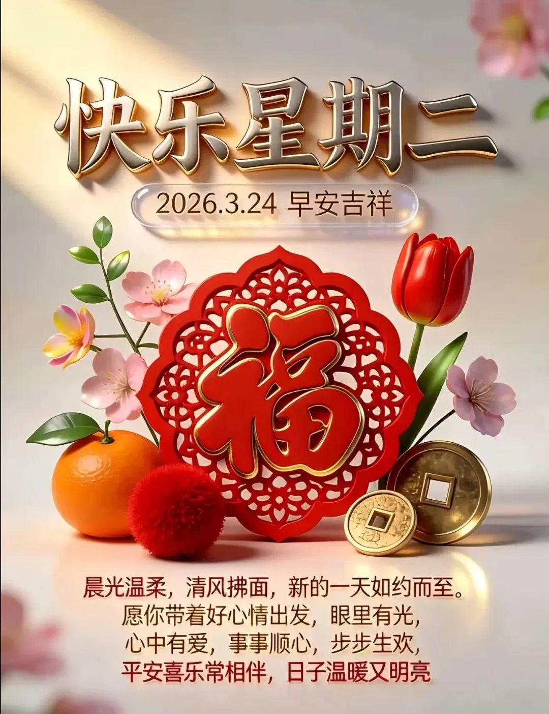 当前位置:首页>美女资讯>3月24日-周二早安漂亮图片祝福语+愿我们永远开心快乐,平安无忧,周二愉快,早安!