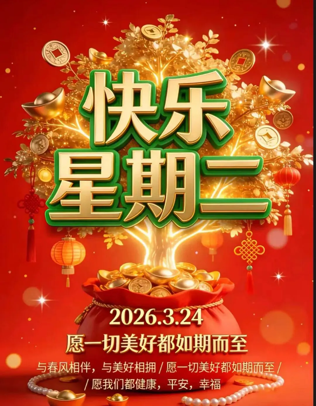 3月24日,周二早上好最漂亮祝福问候表情图片大全,愿我们永远快乐,幸福,健康,周二早上好!