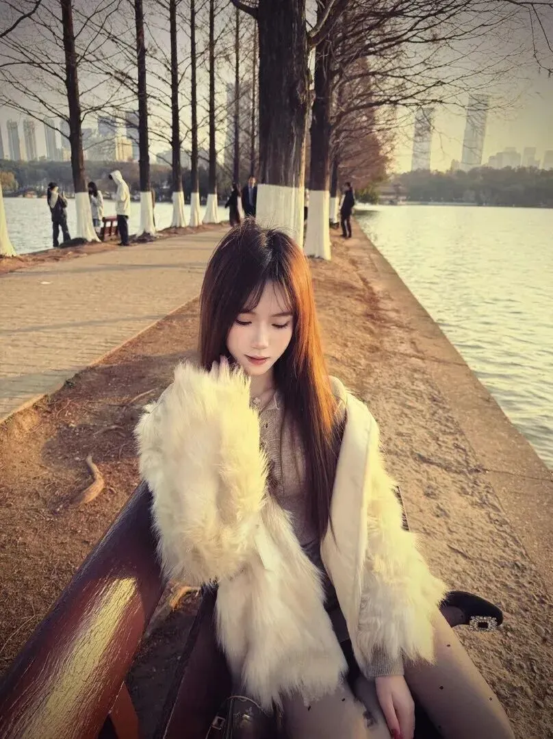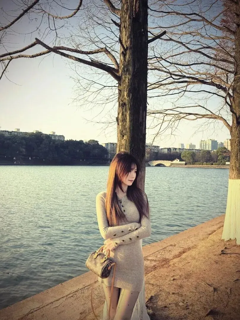 随意的姿势反而更能突出出来。双手交叉于胸前、包包自然地靠在身前的姿势很受人欢迎。背景是秋天湖水、树静默但充满浪漫气质的气质适合用作服装设计风格的依据。