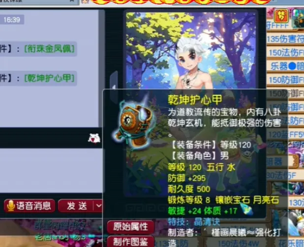 它有24点敏捷、17点体质,打满8段月亮石之后总防为295。最大的一个特性就是带有一个叫“晶清诀”的大特技了,在目前的情况下对于等级达到十二十九级的天科玩家来说已经算是神器了。