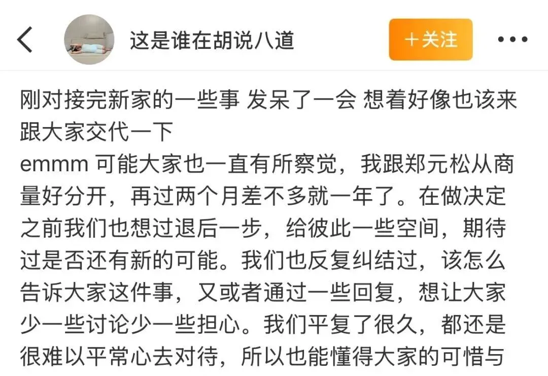 短剧顶流六金 , 前两天亲自官宣 , 和男友郑元松分手 , 而且去年4月就已经商量好了 , 瞒了快一年才说。