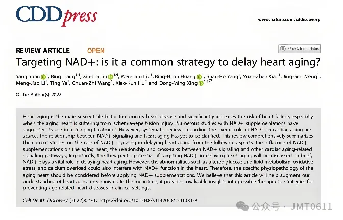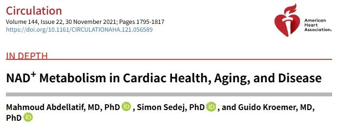 图1.NAD+心脏健康、衰老及疾病的代谢