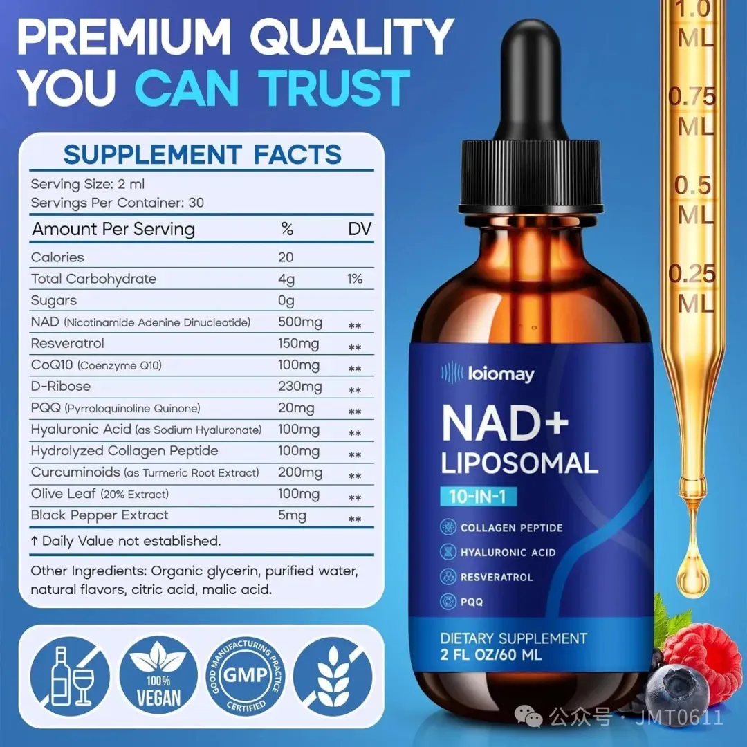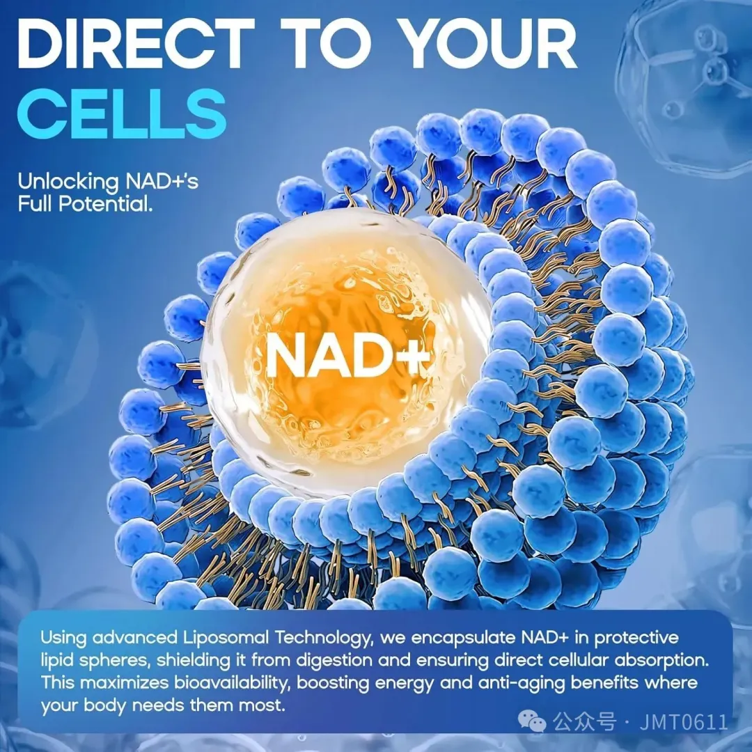 逆转衰老标志:NAD+水平随年龄增长显著下降,补充NAD+前体(如NMN、NR)可恢复细胞活力,改善线粒体功能,延缓肌肉退化、皮肤老化等。
