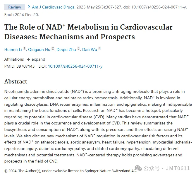 NAD+这一核心代谢分子不仅在细胞能量代谢中发挥关键作用,还广泛参与多种生理过程。深入剖析NAD代谢机制及其在心血管疾病中的作用,对于推动相关治疗策略的发展具有重要意义。