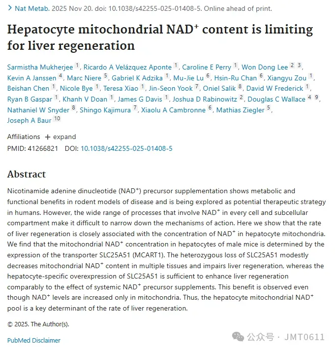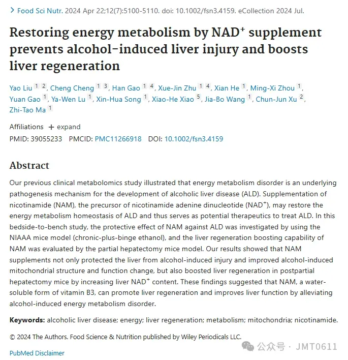临床研究:2021年《Science》报道,NAD+前体NR可改善糖尿病患者肝脏脂肪代谢,降低空腹血糖。