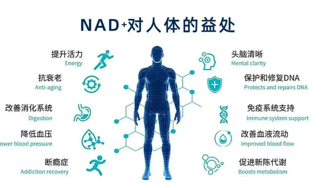 NAD⁺输注具有抑制衰老进程的效果,有望恢复全身功能并防止衰老。通过静脉输液直接补充 NAD⁺ 可迅速提高体内 NAD⁺ 水平,支持细胞修复和再生。