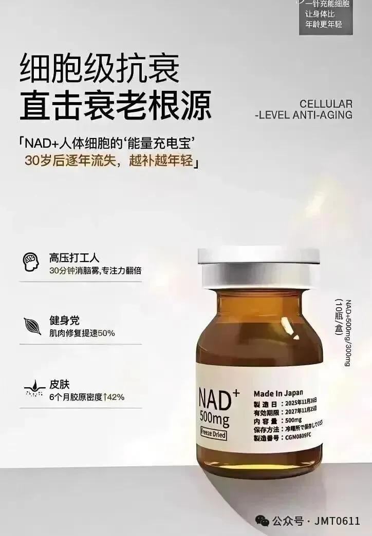 皮下注射NAD⁺具有抑制衰老进程的效果,有望恢复全身机能并防止衰老。通过注射直接补充 NAD⁺ 可迅速提高体内 NAD⁺ 水平,支持细胞修复和再生。