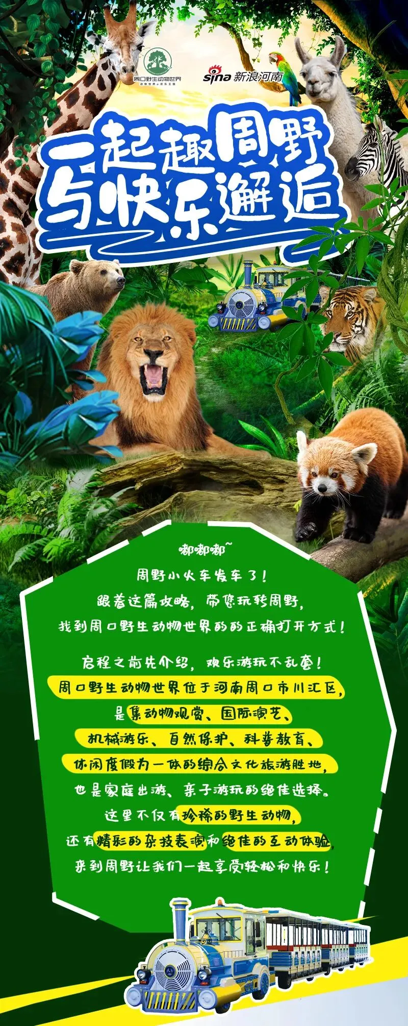 仅此一期 【3月28号丨周口野生动物世界】原价218元 现价仅需160元一票通玩,4大游玩区域,6大精彩演艺,亲子畅玩一日游!