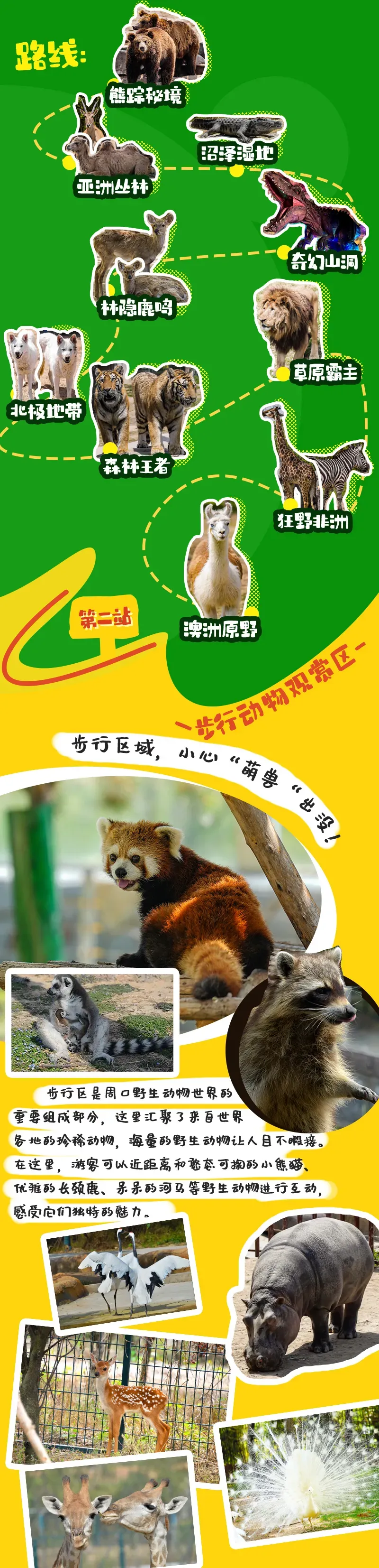 我们可以穿越 “澳洲原野”“亚洲丛林”“狂野非洲”“熊踪秘境”,近距离观察数十种大型食肉、食草动物。