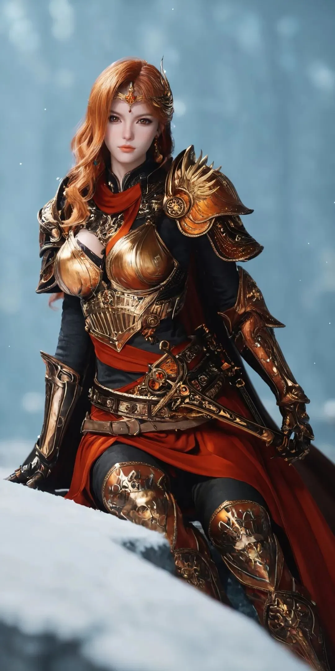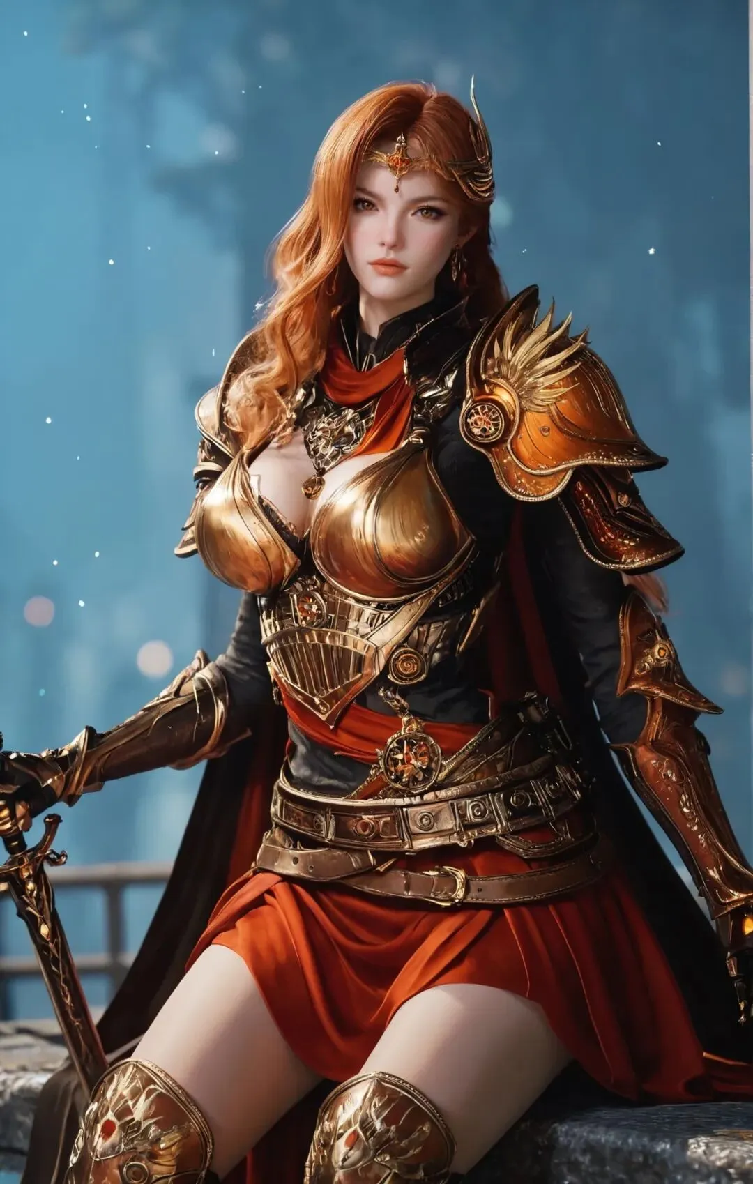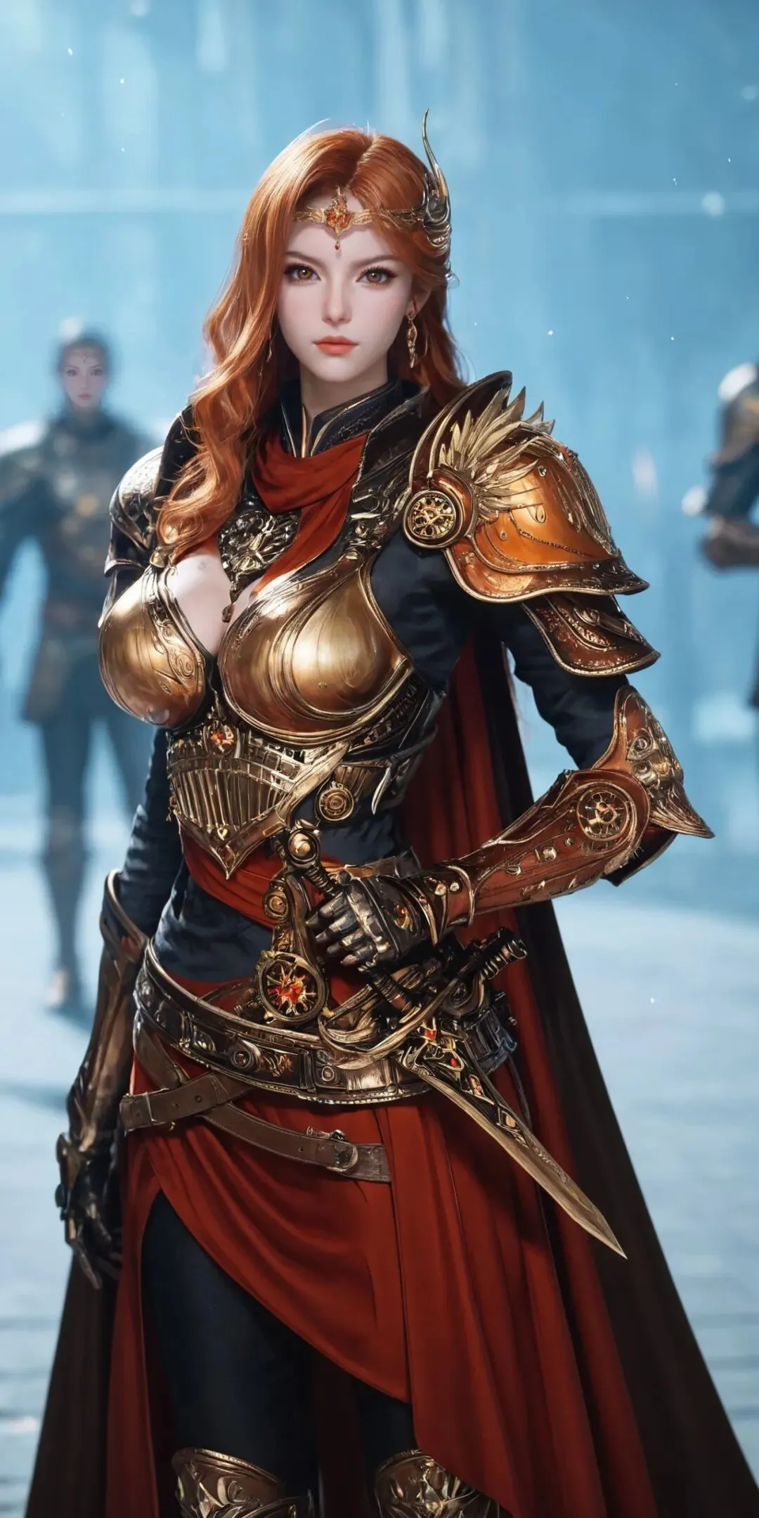 最亮眼的当属这身橘色战甲!战甲是贴身设计,不笨重却超有气场,完美贴合身形还不影响战斗灵活性。外搭一件宽大披风,随风飘动时瞬间拉满统帅威严,走路都带风。发型也超利落,高马尾束得干干净净,搭配护额和中分斜刘海,把干练果断的气质拿捏得死死的。再配上一把长剑,手持兵器的瞬间,将军的气场直接溢出屏幕。