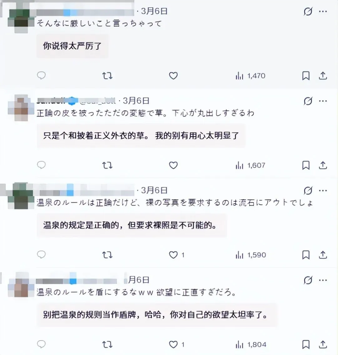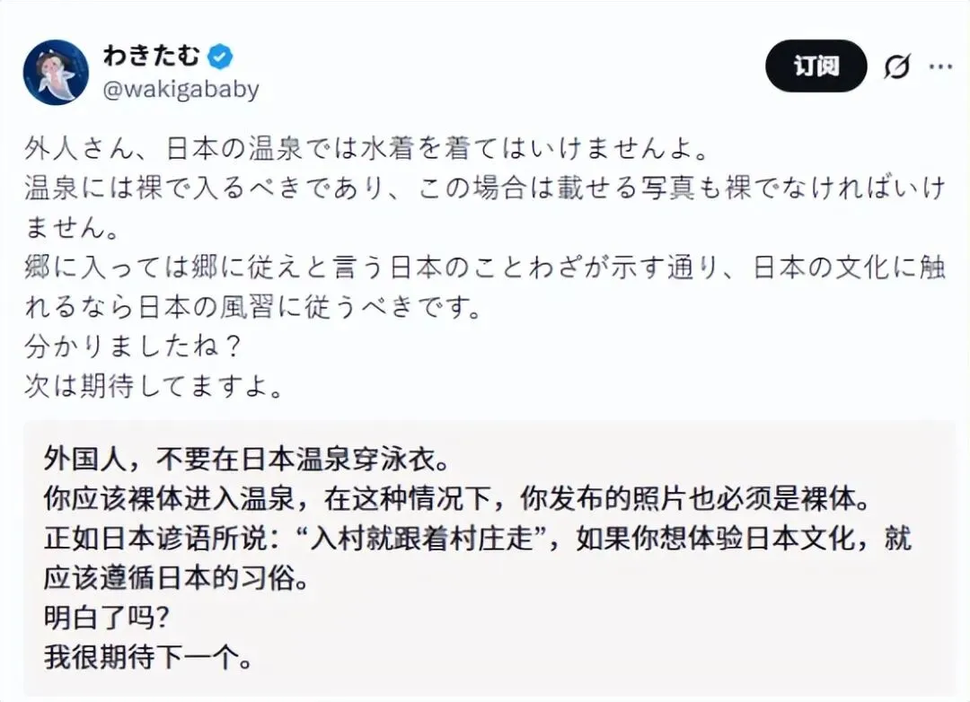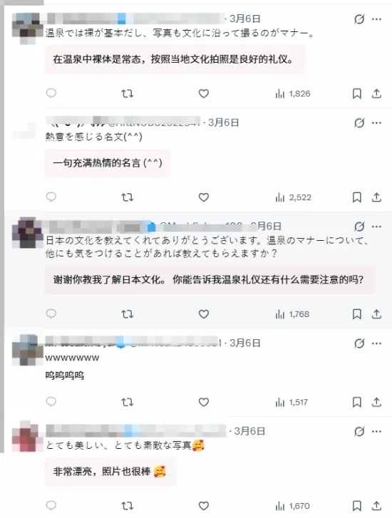 很快,有日本网友跳出来“科普”:在日本温泉里,是不能穿泳衣的,应该裸浴。