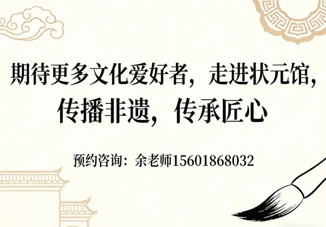 行知非遗文创馆致力于非物质文化遗产的传承、传播、创新与活化。我们提供非遗课程定制、文创礼品开发、企业团建活动策划等服务。如需合作,欢迎联系余老师15601868032
