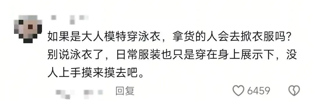 王女士发帖后引发网友关注和讨论,评论区有网友称订货商需要了解面料,只是摸衣服并无不妥,但有不少网友表示感到不适:“不该对小女孩动手动脚。”“摸料子应该有样衣,而不是直接上手摸。”