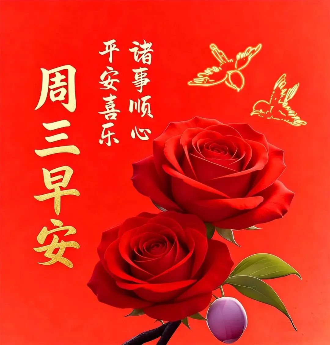 清晨早安问候,是真情的传递。深深的牵挂,浓浓的思念,暖暖的祝福。祝你:事事顺心,时时开心,天天快乐,年年如意!周三早上好!