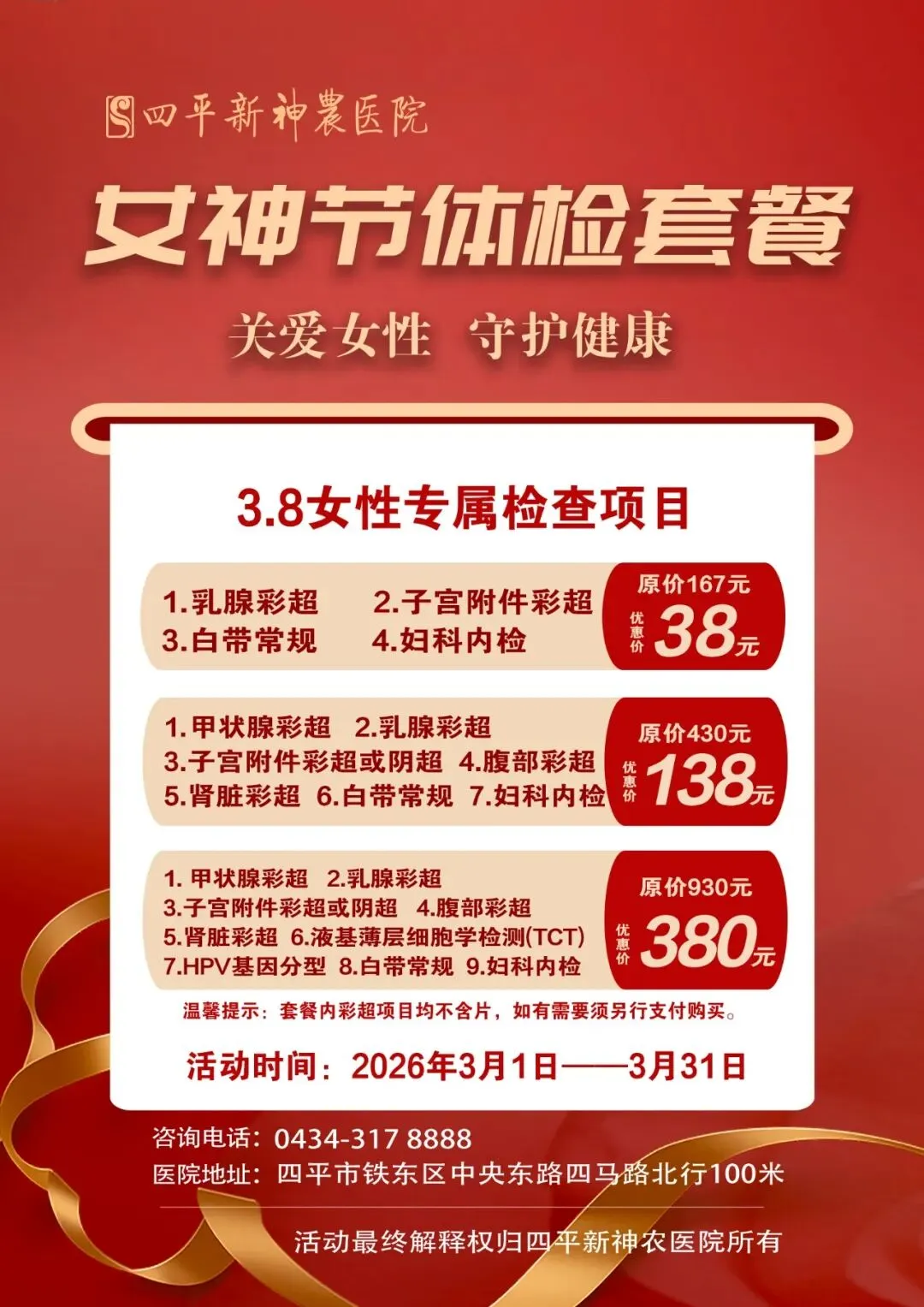 当前位置:首页>美女资讯>【优惠活动】女神体检套餐倒计时!