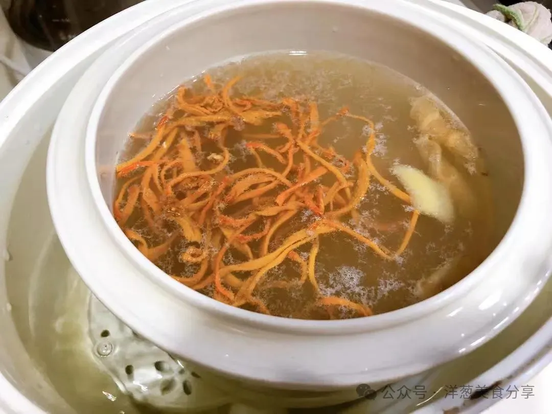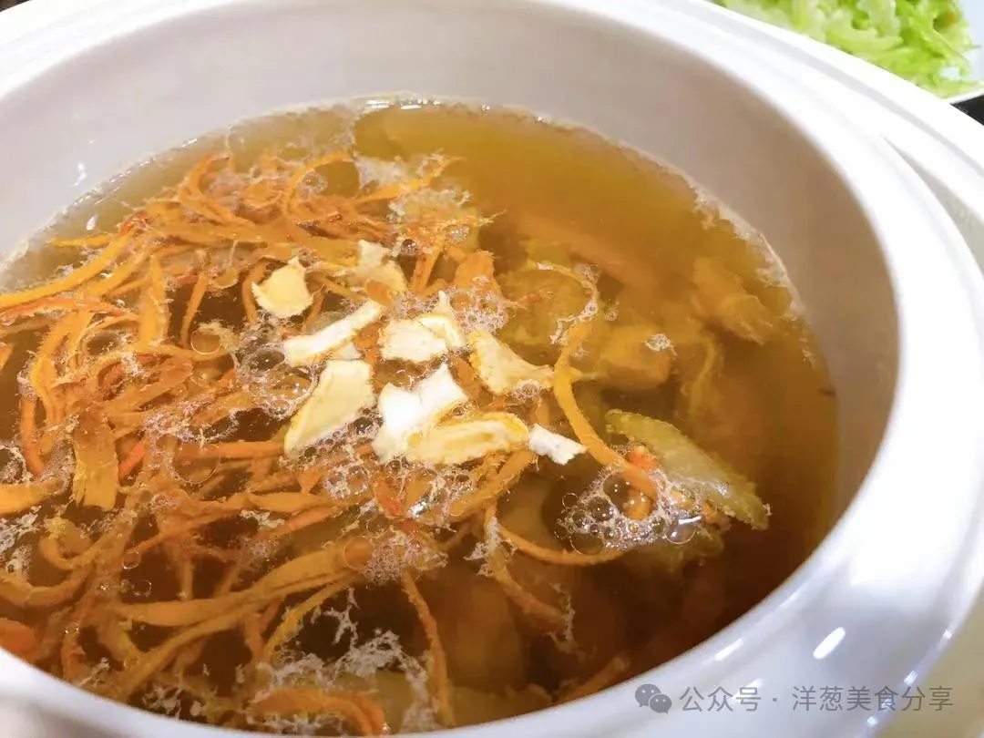 如果花胶是泡发好的,或者是比较薄的款,可以考虑30分钟后在和虫草花一起加入。如果花胶是厚款,可以一开始和所有食材一同放入