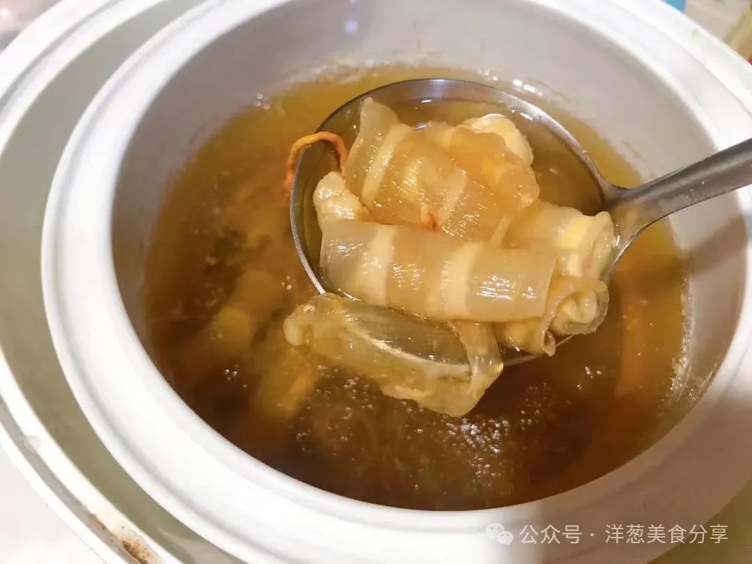这个汤用任何花胶都可以,且不油腻,不腥,有干贝的鲜甜。