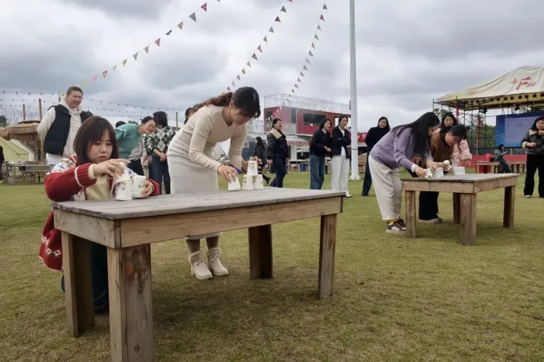 趣味互动环节精彩纷呈,叠杯子、夹气球两项游戏备受欢迎。女神们踊跃参与、默契配合,比拼速度与协作力,加油声、欢笑声此起彼伏,既展现了团结向上的精神风貌,又拉近了彼此距离,现场氛围热烈又温馨。