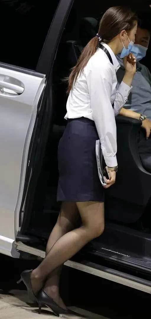 车上的人也一样引人注目。白衬衫配藏青色短裙,丝袜高跟鞋不能少。低头看着文件的时候,专业感十足。即使空间有限,穿得体面一样可以撑起场面。工装穿对了,在哪里都是职场精英。
