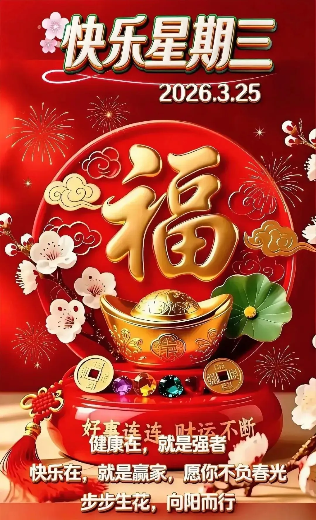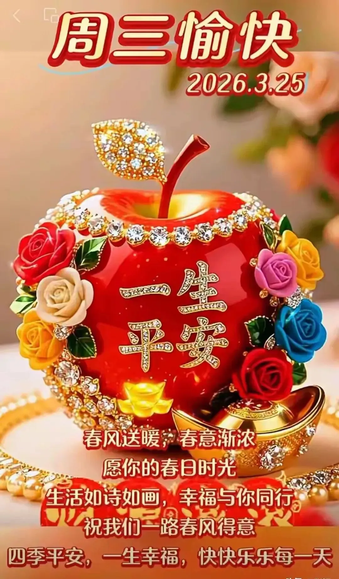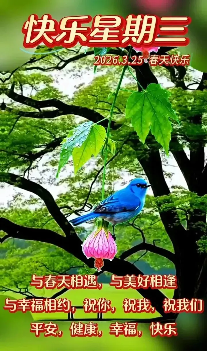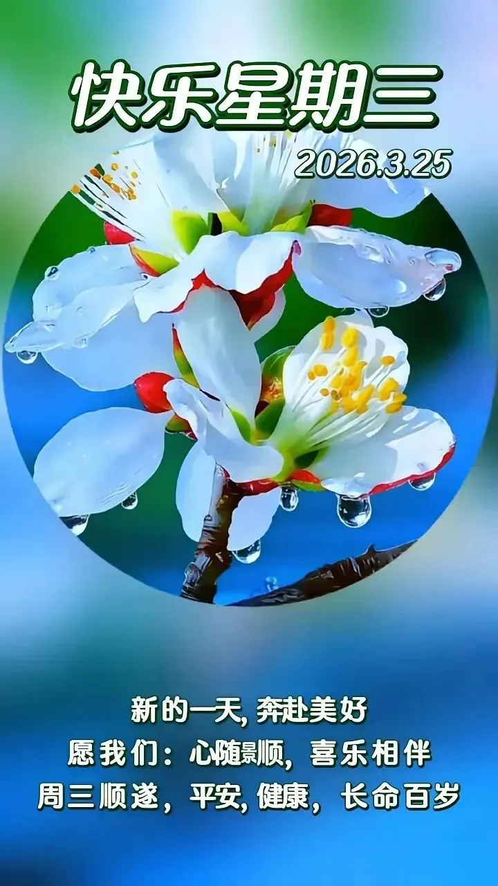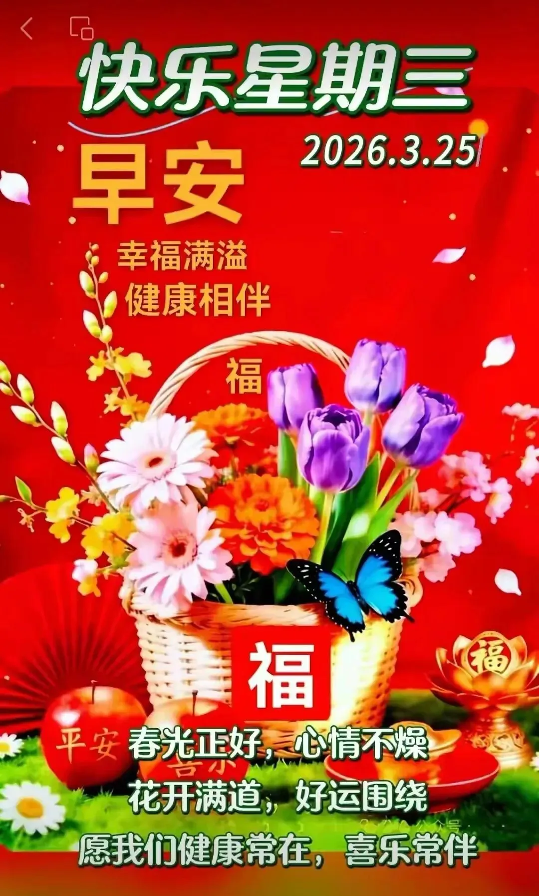 当前位置:首页>美女资讯>2026.3.25日周三最美精品祝福图片,快乐星期三,周三愉快!周三早安,春风和煦花正开,岁岁平安福自来!