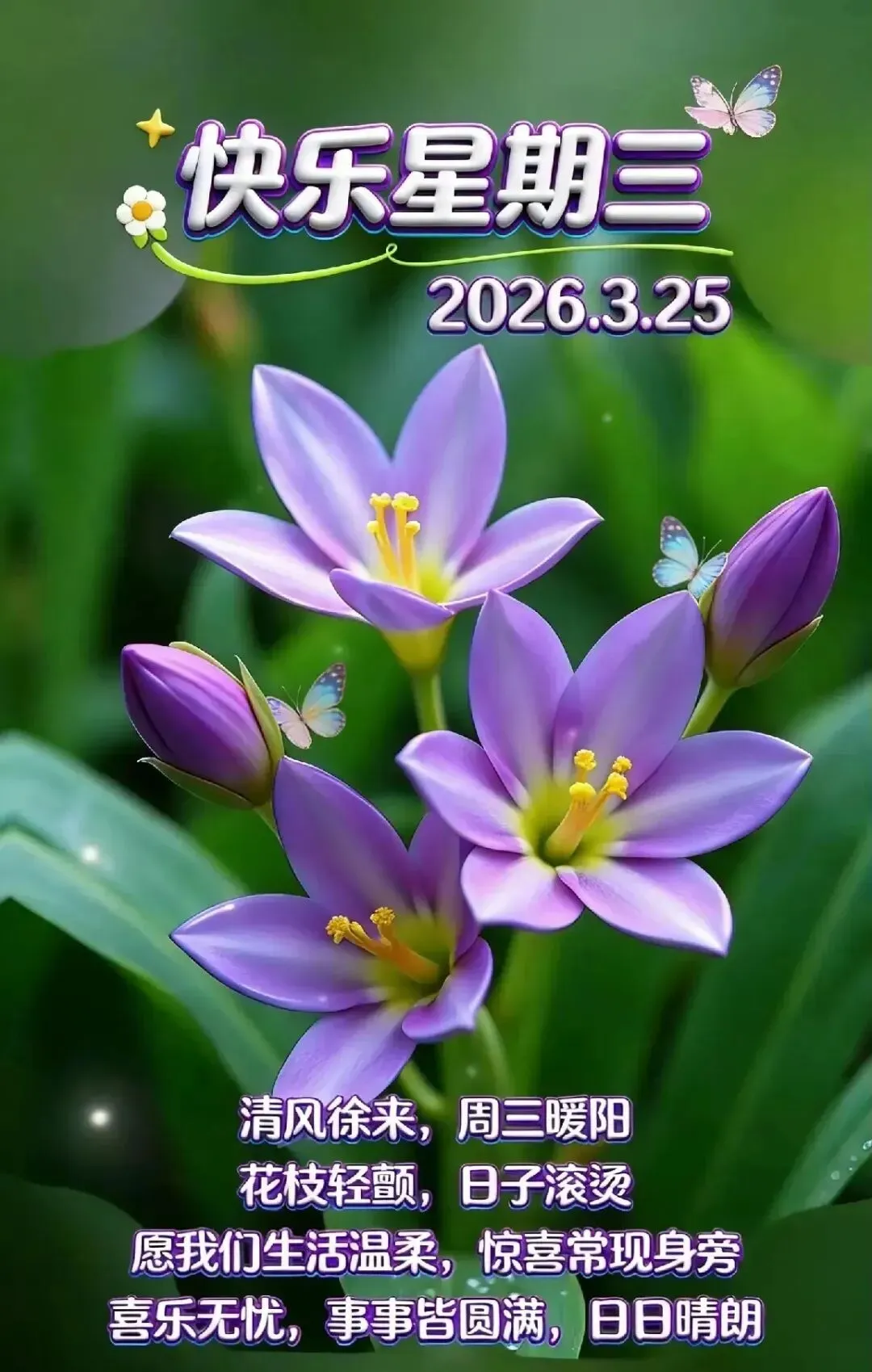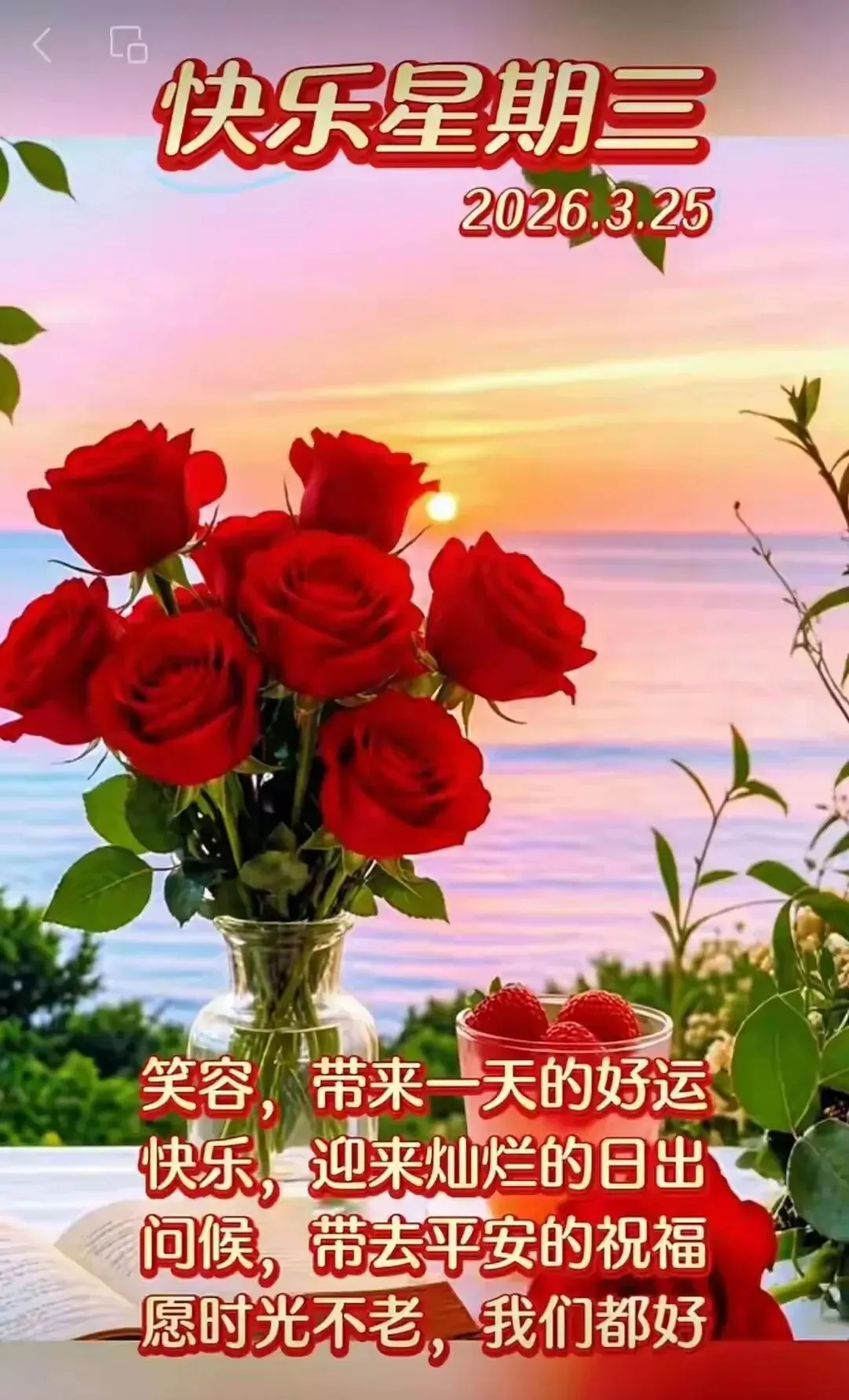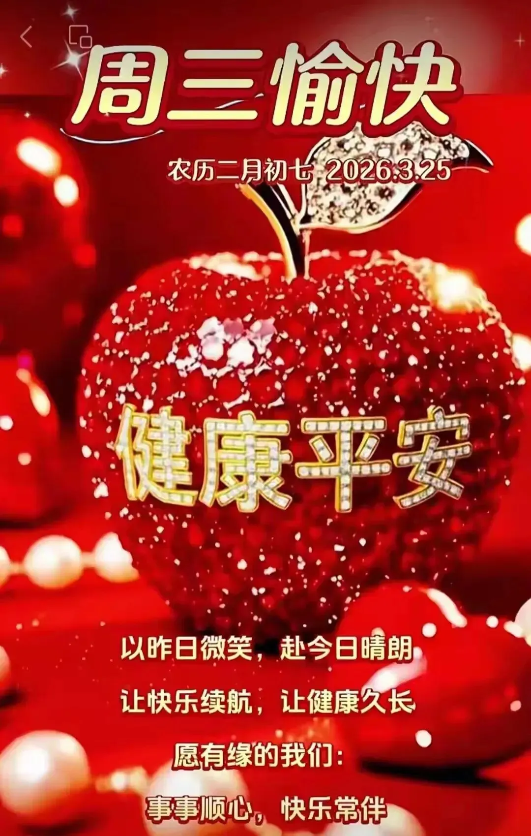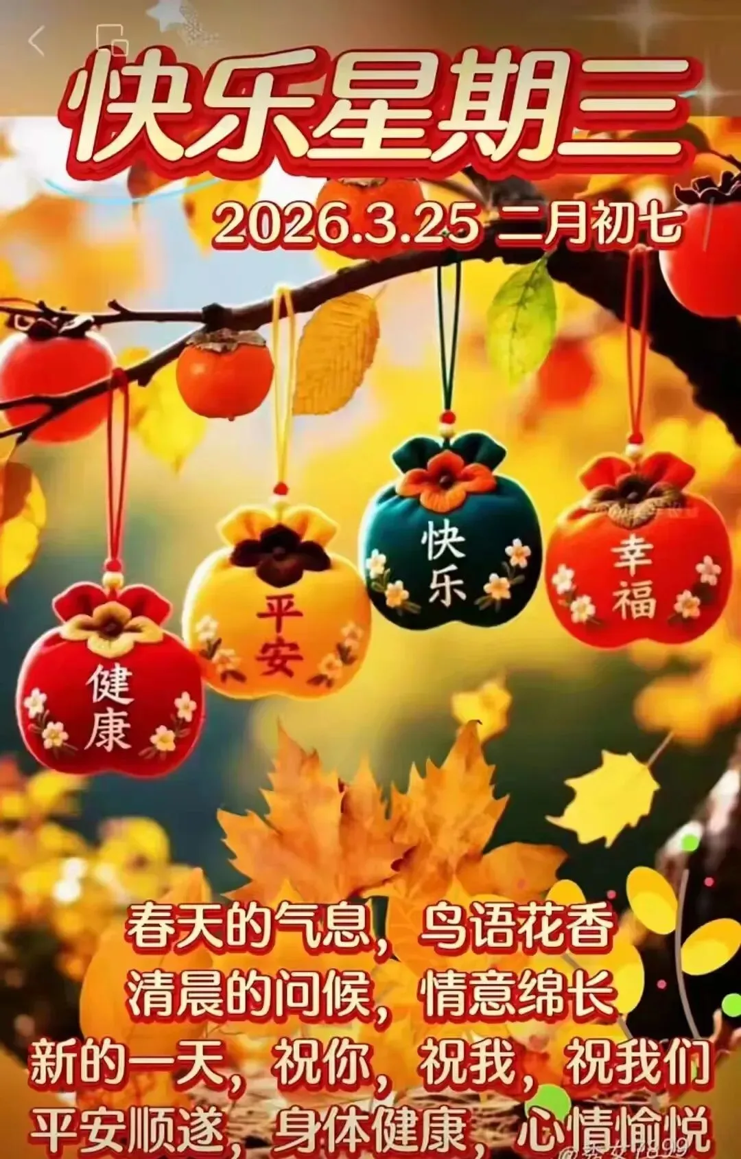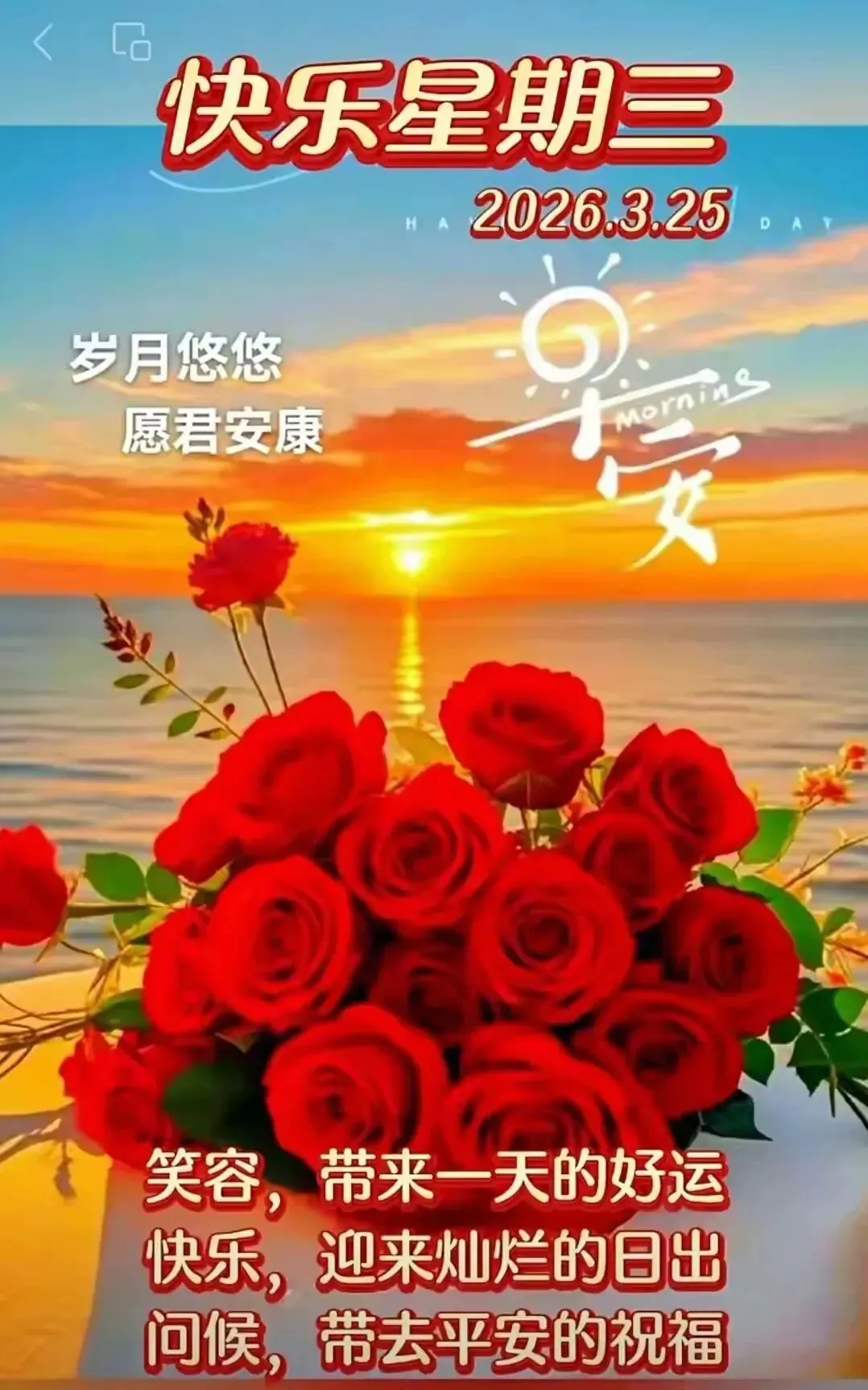 当前位置:首页>美女资讯>2026.3.25日周三最美精品祝福图片,快乐星期三,周三愉快!周三早安,春风和煦花正开,岁岁平安福自来!