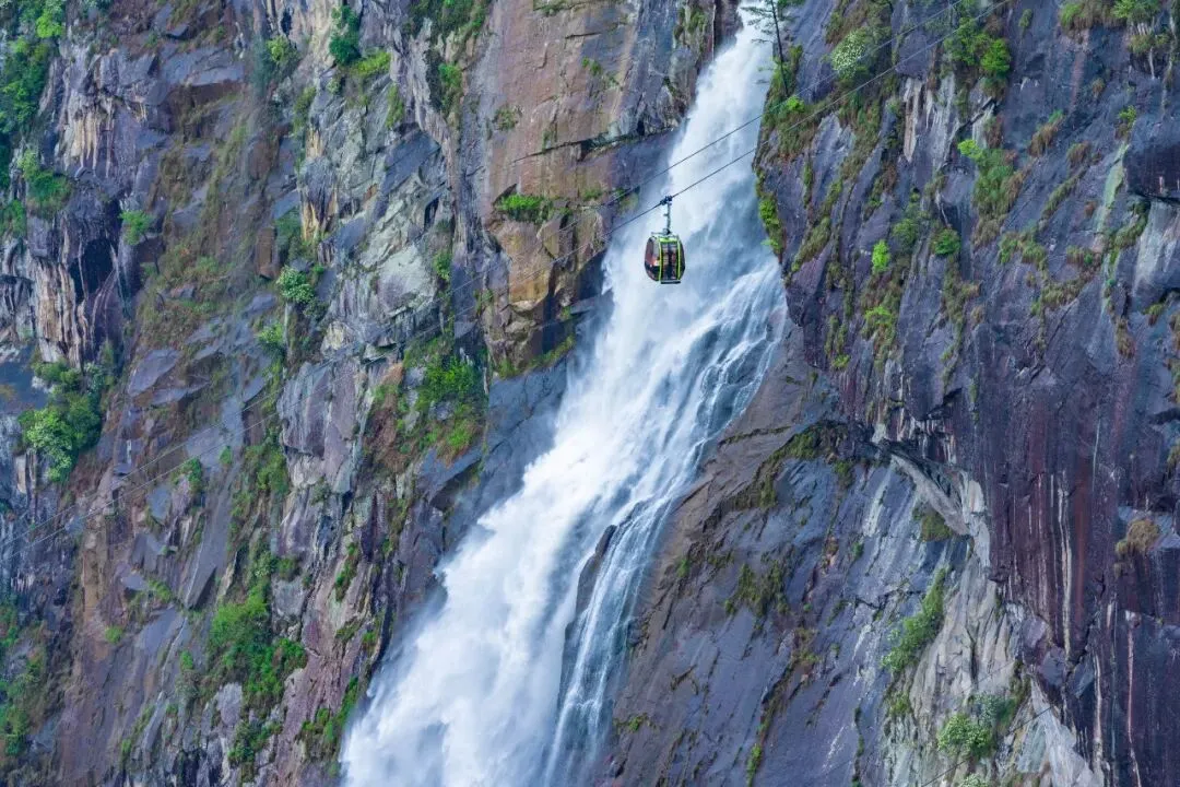 单程运行时间大概半个小时,一路如行进在一幅恢弘画卷中,可饱览瀑布、断崖、森林、竹海等景色。