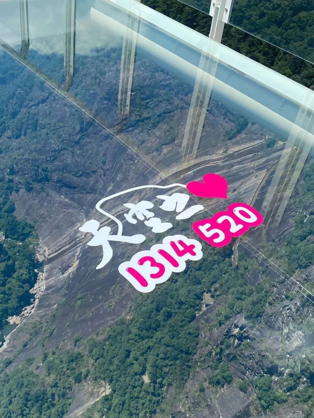 悬空高度314米,下面是深不见底的悬崖峭壁和奔腾而下的瀑布,是景区的网红打卡点和爱情圣地。