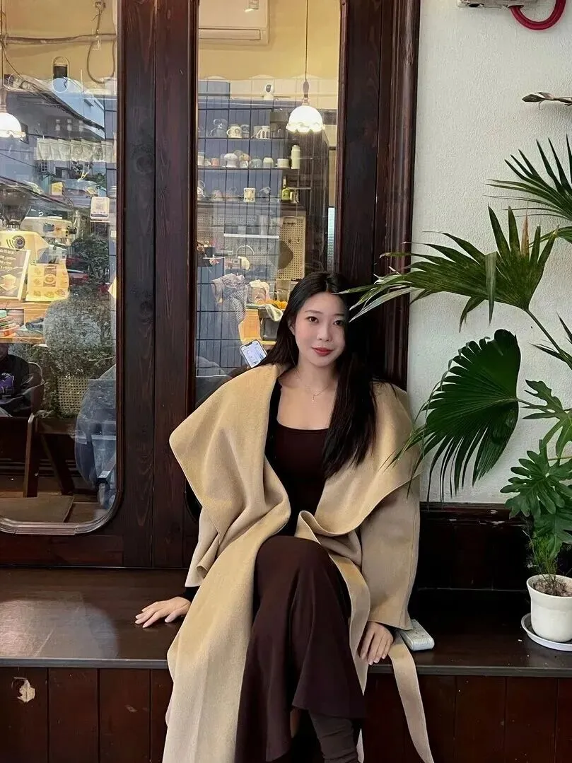 复古都市丽人风属于第一套。深棕色吊带裙将身材裹住,曲线美不胜收,外面套一件米黄色的长款毛呢大衣,立刻增添了几分温婉的感觉。颜色搭配特别高级,深棕和米黄一起使用,暖洋洋的,复古味道浓重,但是不会显得老气。大衣版型松松散散的,恰好中和了吊带裙的性感,大方又雅致。涂上口红之后,气色一下子就变好了,这套衣服简直就是为约会、下午茶量身定做,走哪儿都是焦点。