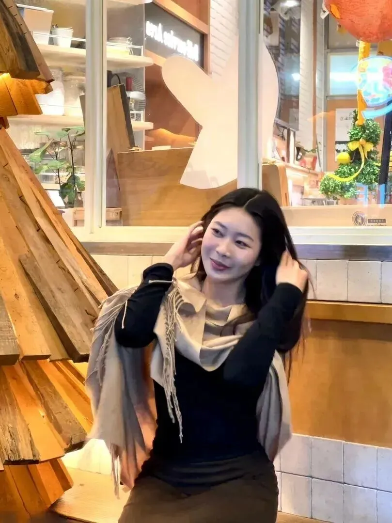 第二套是街头休闲风,日常生活中的着装适合。黑色紧身长袖上衣线条简洁利索,身材比例拿捏到位,最醒目的就是那条卡其色流苏围巾,随意一围,立体感就出来了。围巾的流苏随风飘啊飘,带有点随性、洒脱的味道。下身一条深棕色的裙子,同色系的搭配既显高雅又和谐。这样穿既保暖又时尚,寒风中可以美美地拍照。