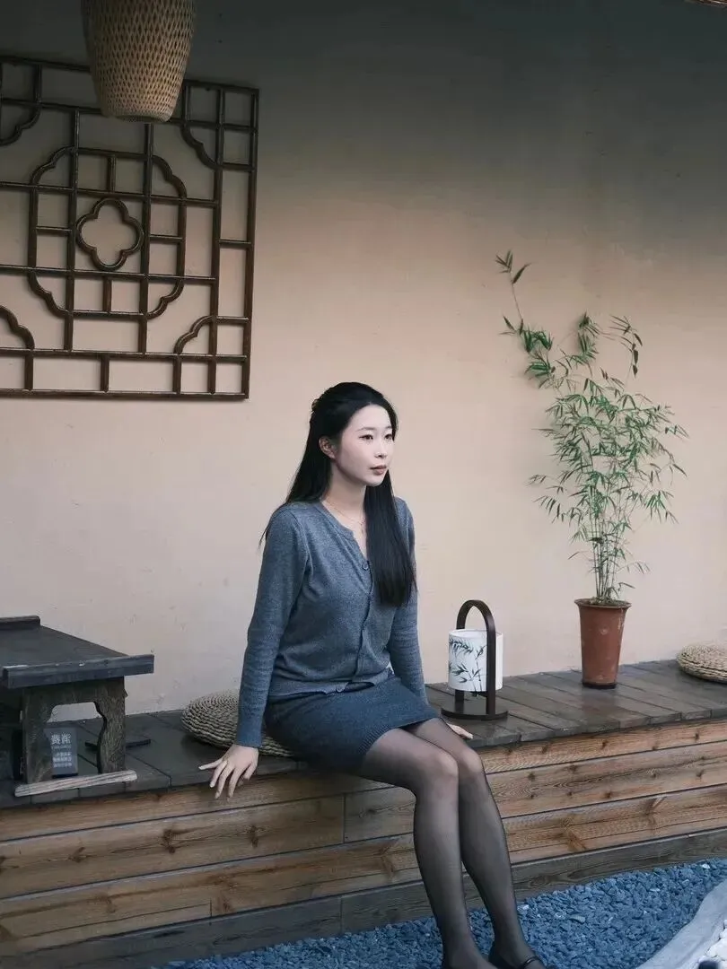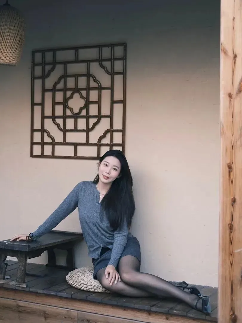 第四类为茶室淡雅风,带有明显东洋文化的特征。浅灰色针织开衫属于细软材质带有多颗扣子的款式,下半身穿上了一件深灰色短裙,腿部更加的纤瘦。黑色丝袜配低跟皮鞋有一种精致的感觉。草编蒲团后面配有中式窗格的场景,坐下来为第一幅。爱摄影的女同学们一定能拍出大片。
