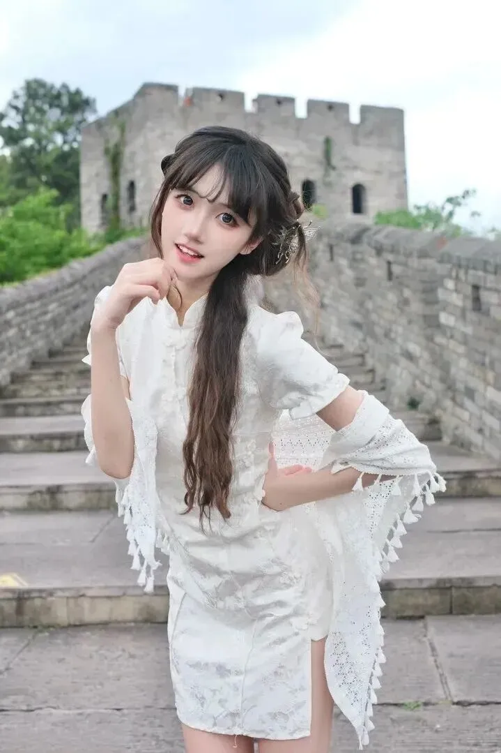 绝了!古城墙下的白色旗袍女神,这样穿美到让人忘记时间!