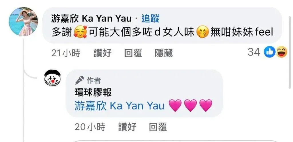 游嘉欣親自回應!(圖片來源:Facebook截圖)