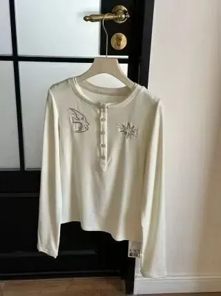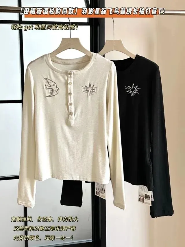 女神节活动|田曦薇谭松韵同款亨利衫,羽影星踪飞鸟刺绣修身打底衫